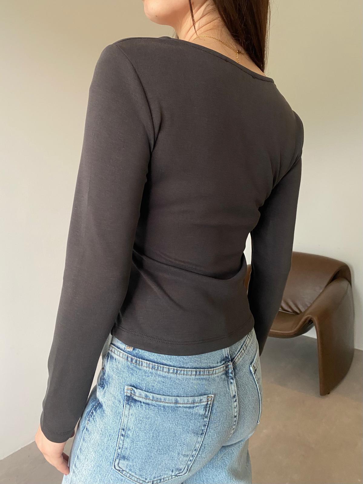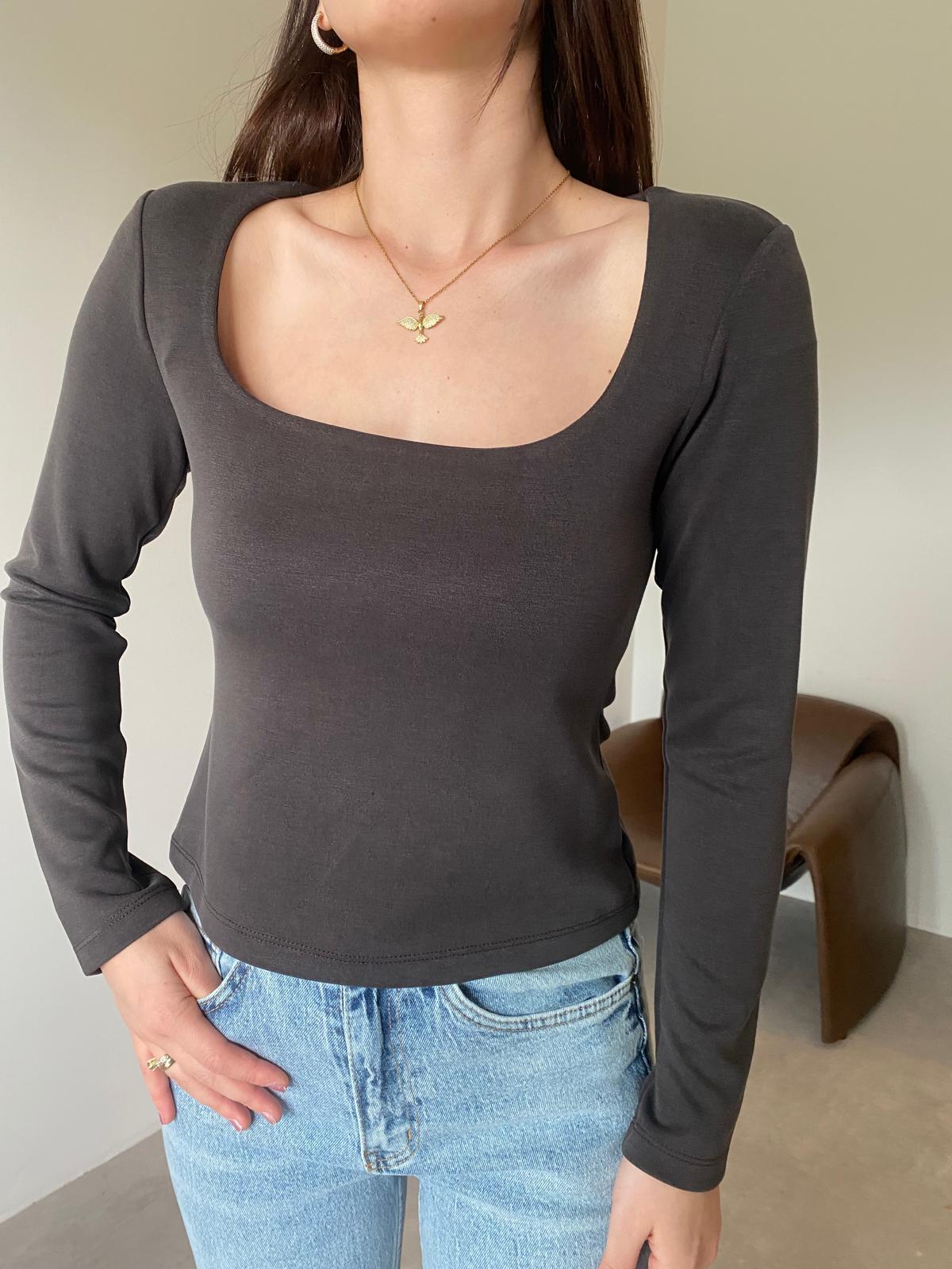 Acı Kahve Özel Dokulu Kare Yaka Bluz (14162)