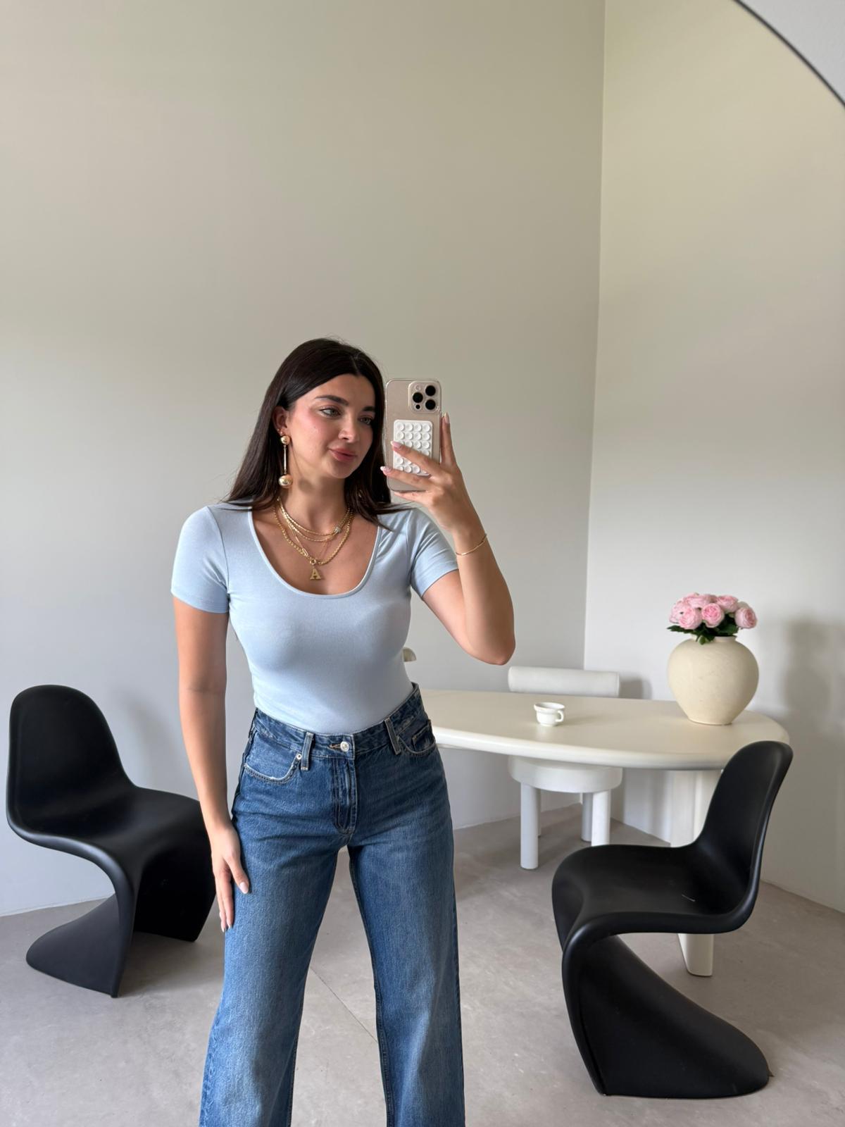 Bebe Mavisi Yuvarlak Yaka Yumuşak Dokulu Tişört (13739)