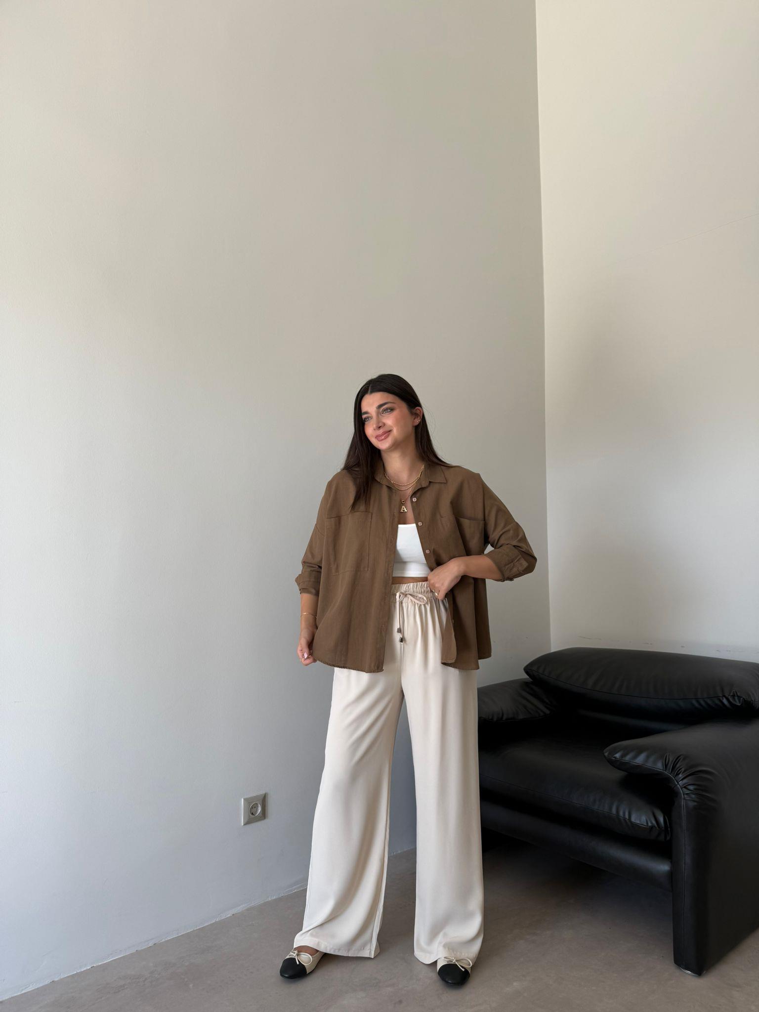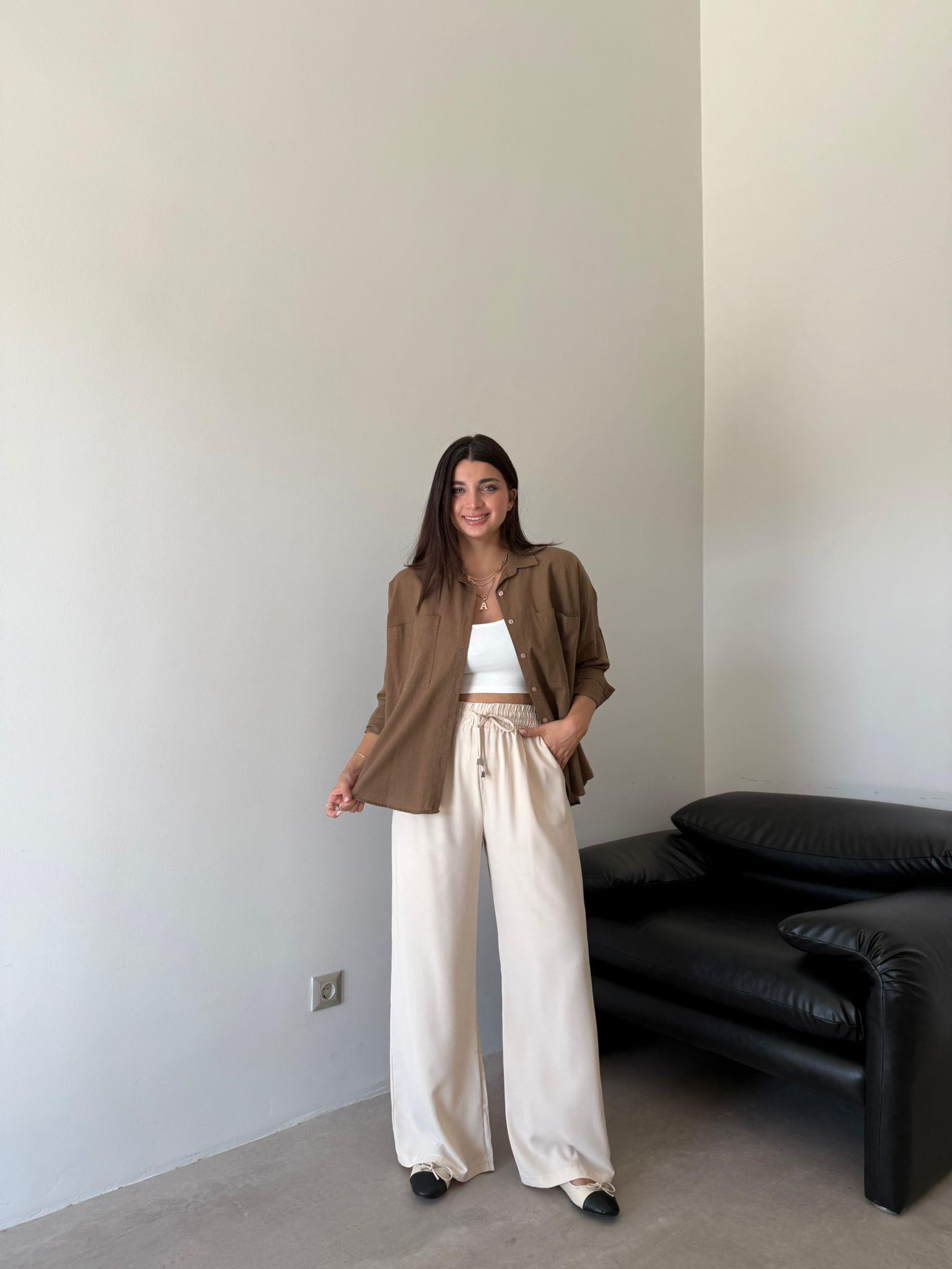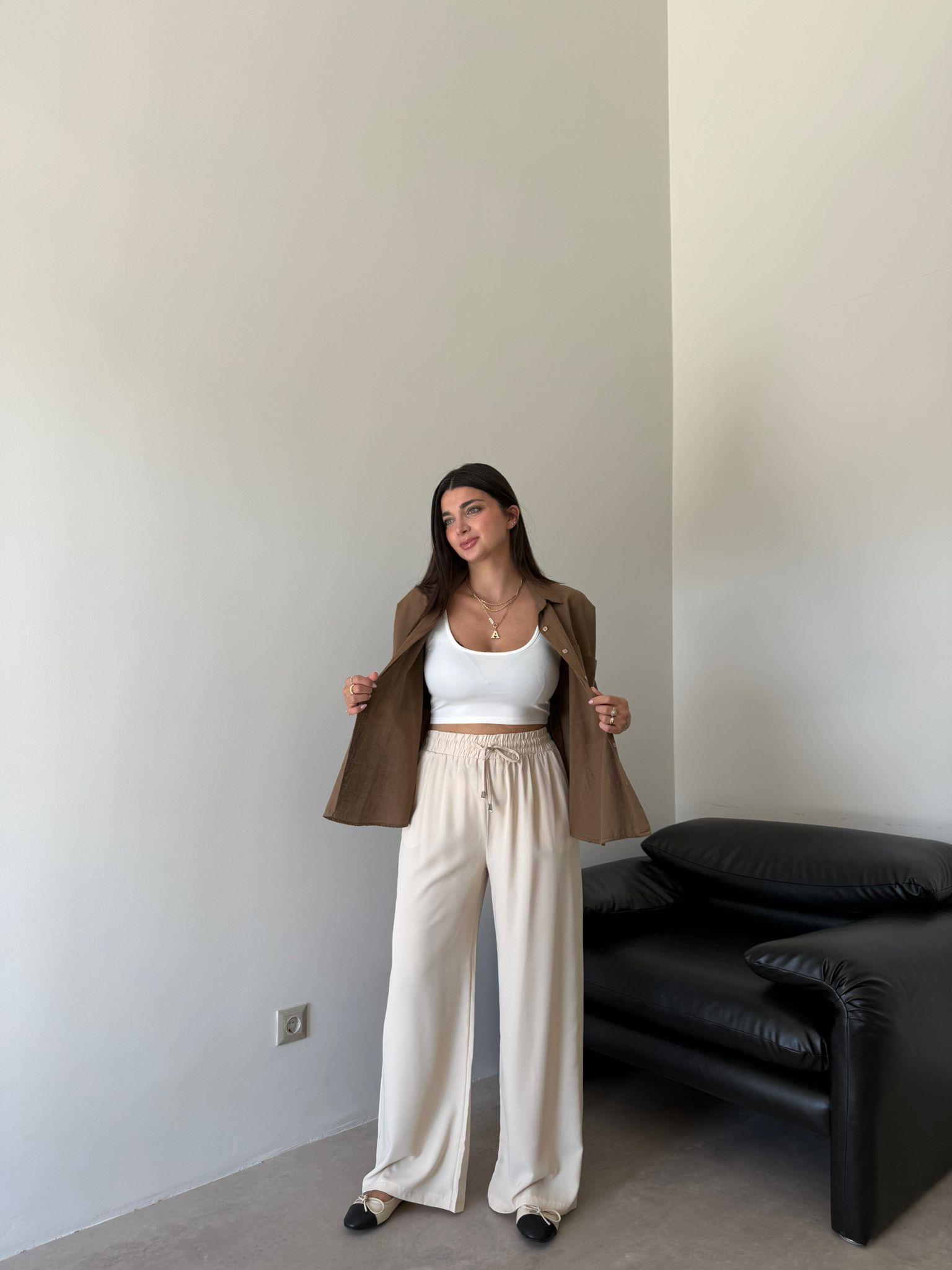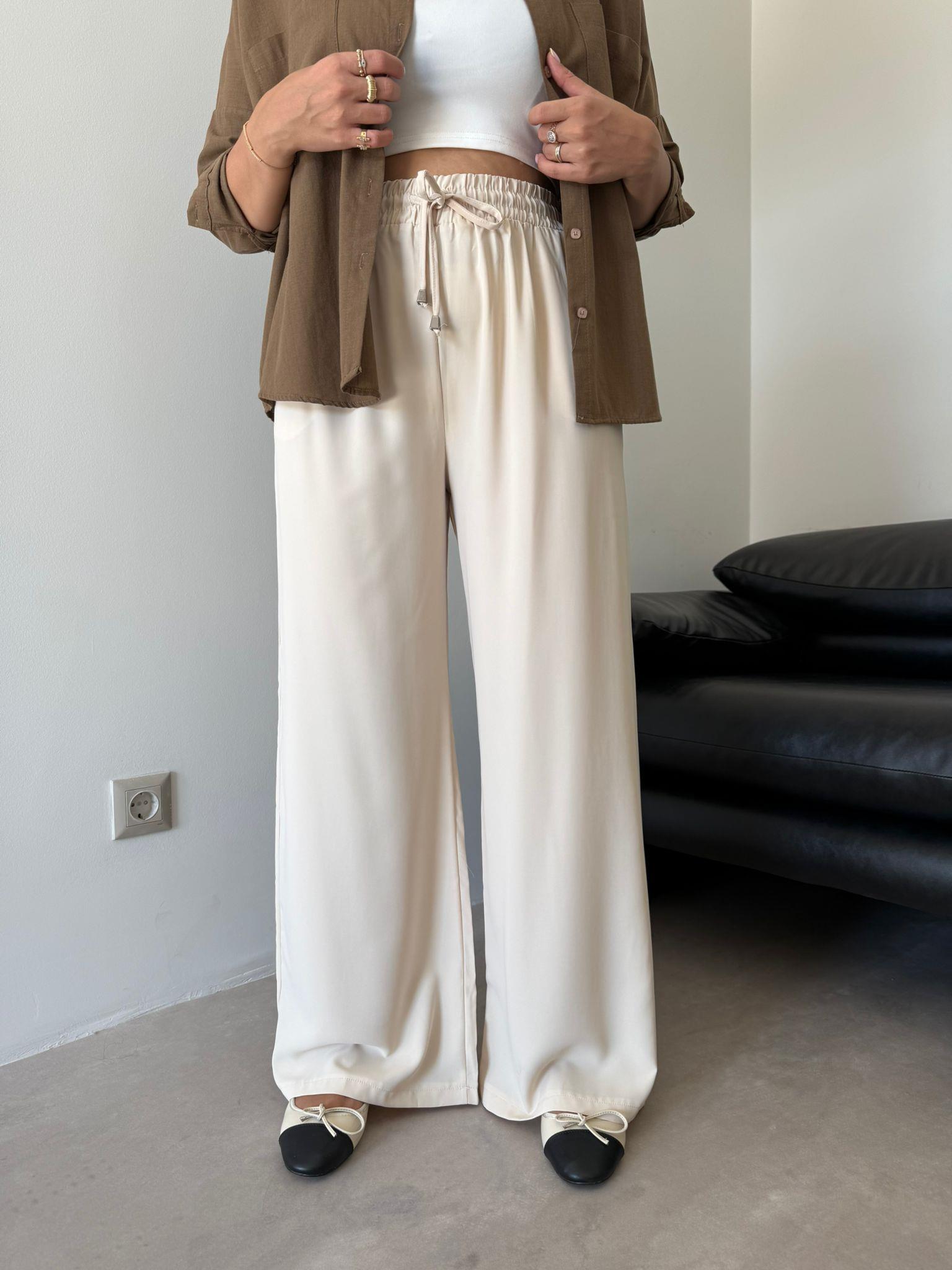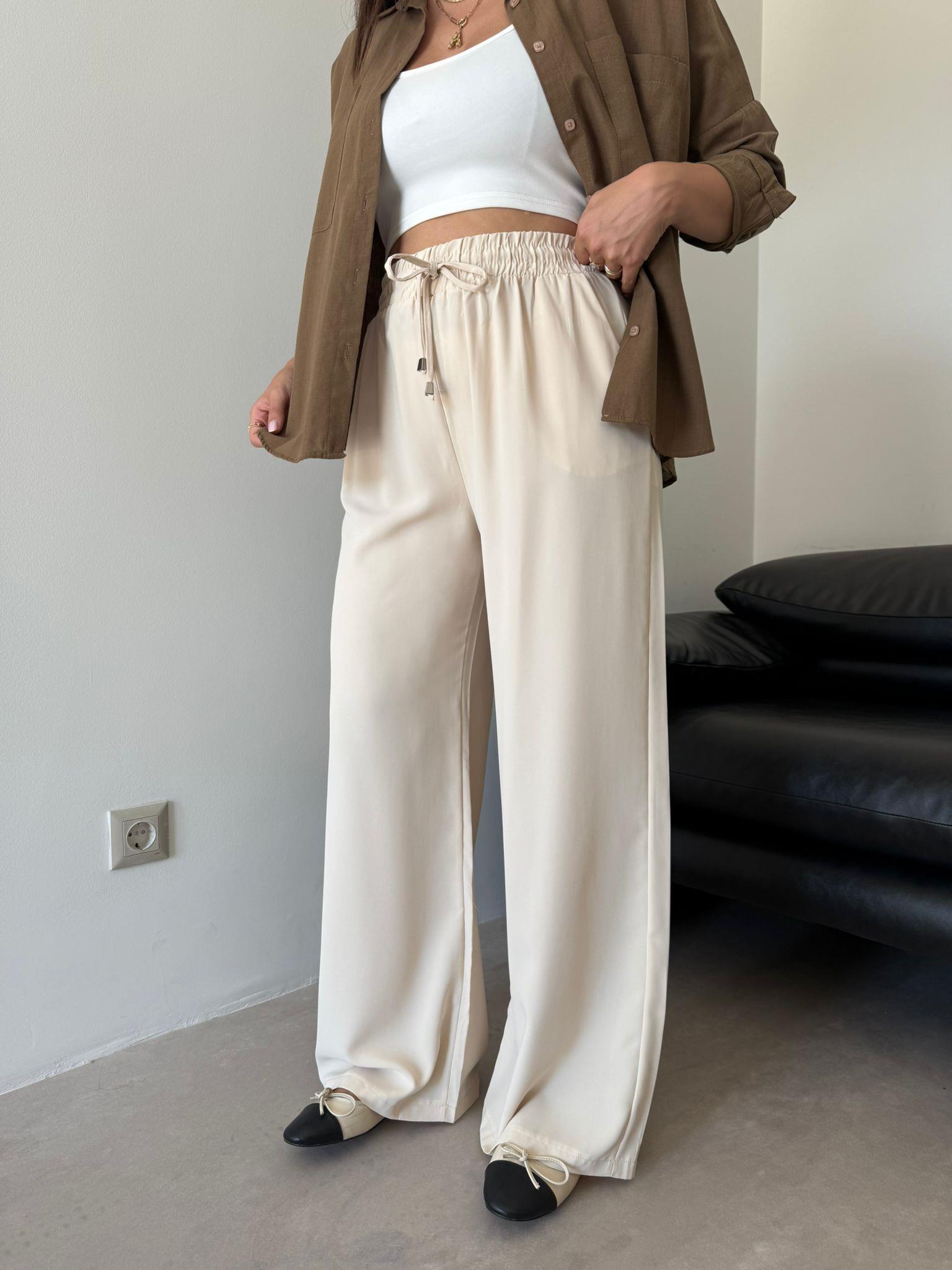 Bej Cep Detaylı Aria Bol Paça Pantolon (13081)