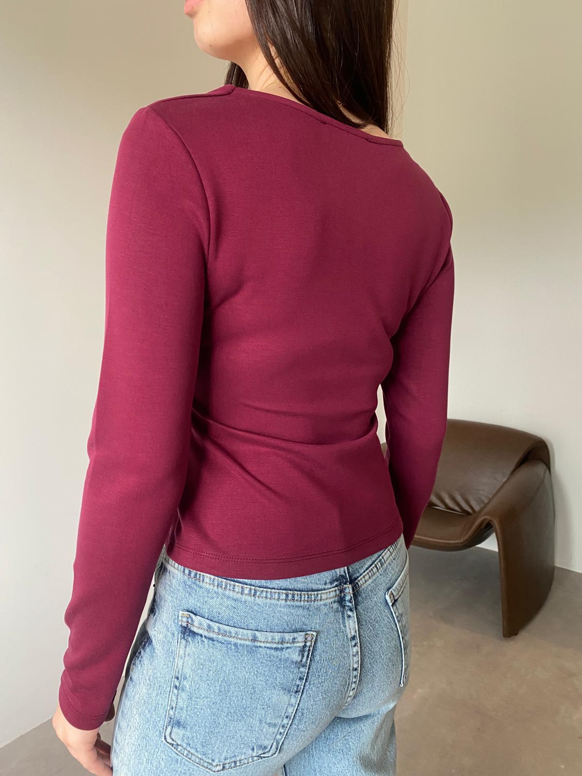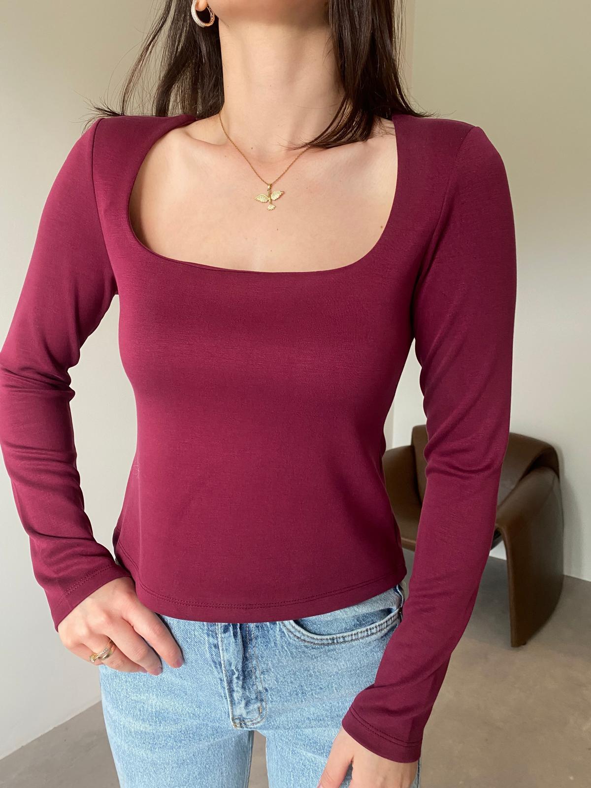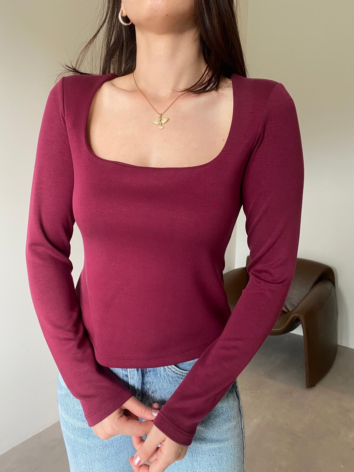 Bordo Özel Dokulu Kare Yaka Bluz (14161)