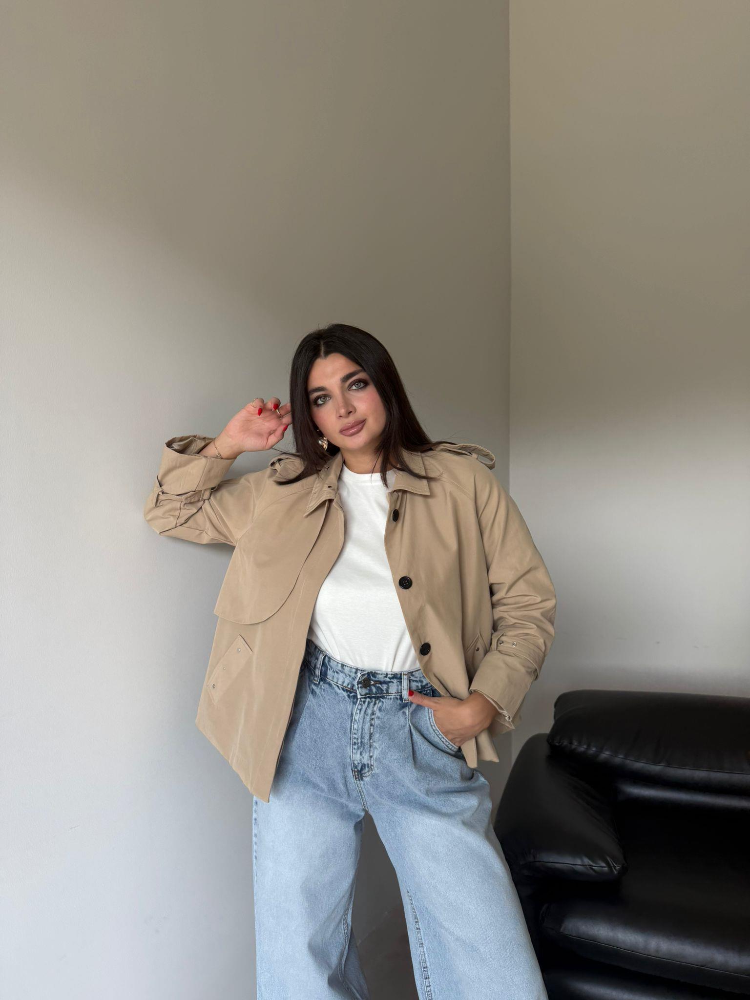 Camel Zımba Detaylı Trenç Ceket (14094)