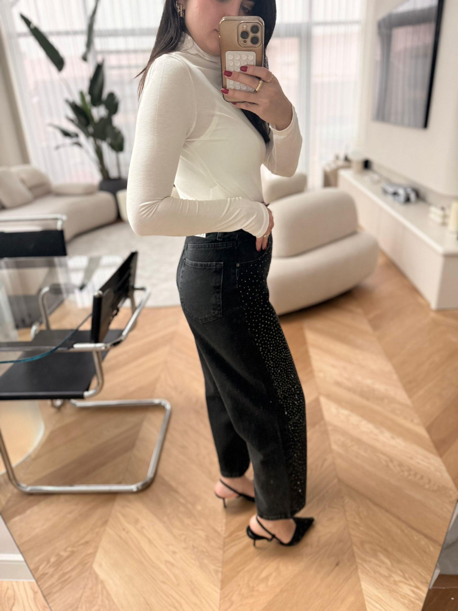 Füme Taşlı Mom Jean (14547)