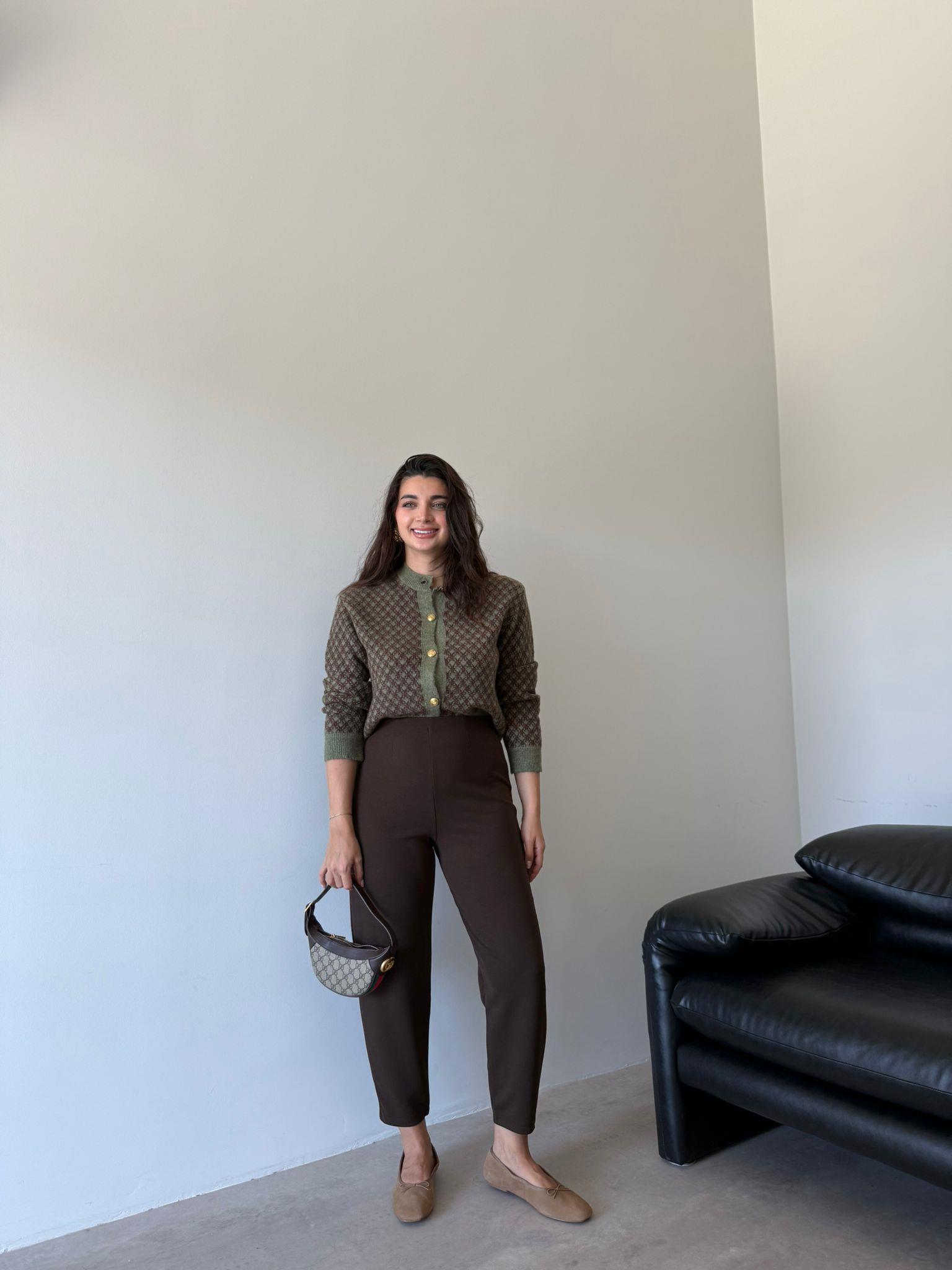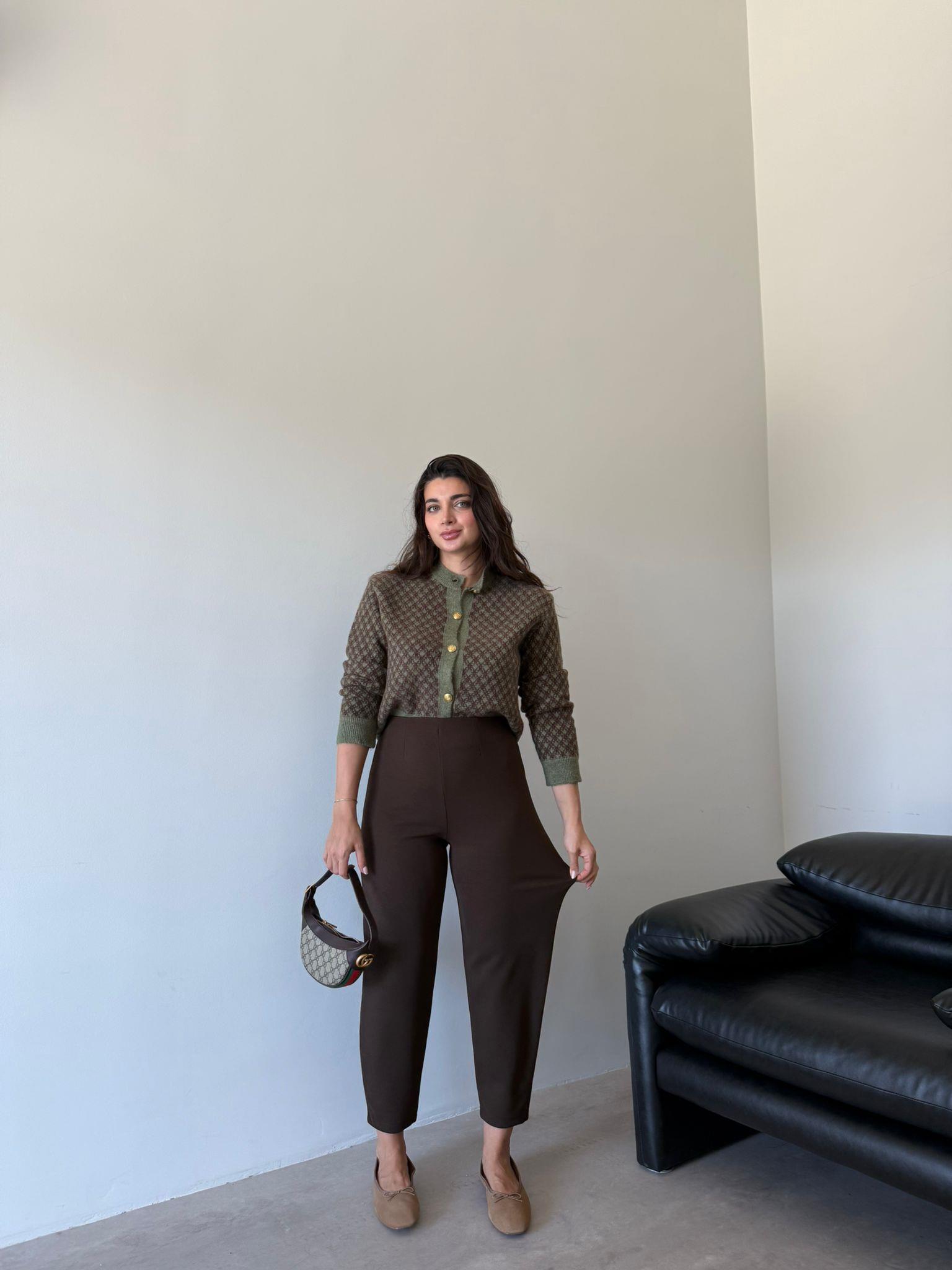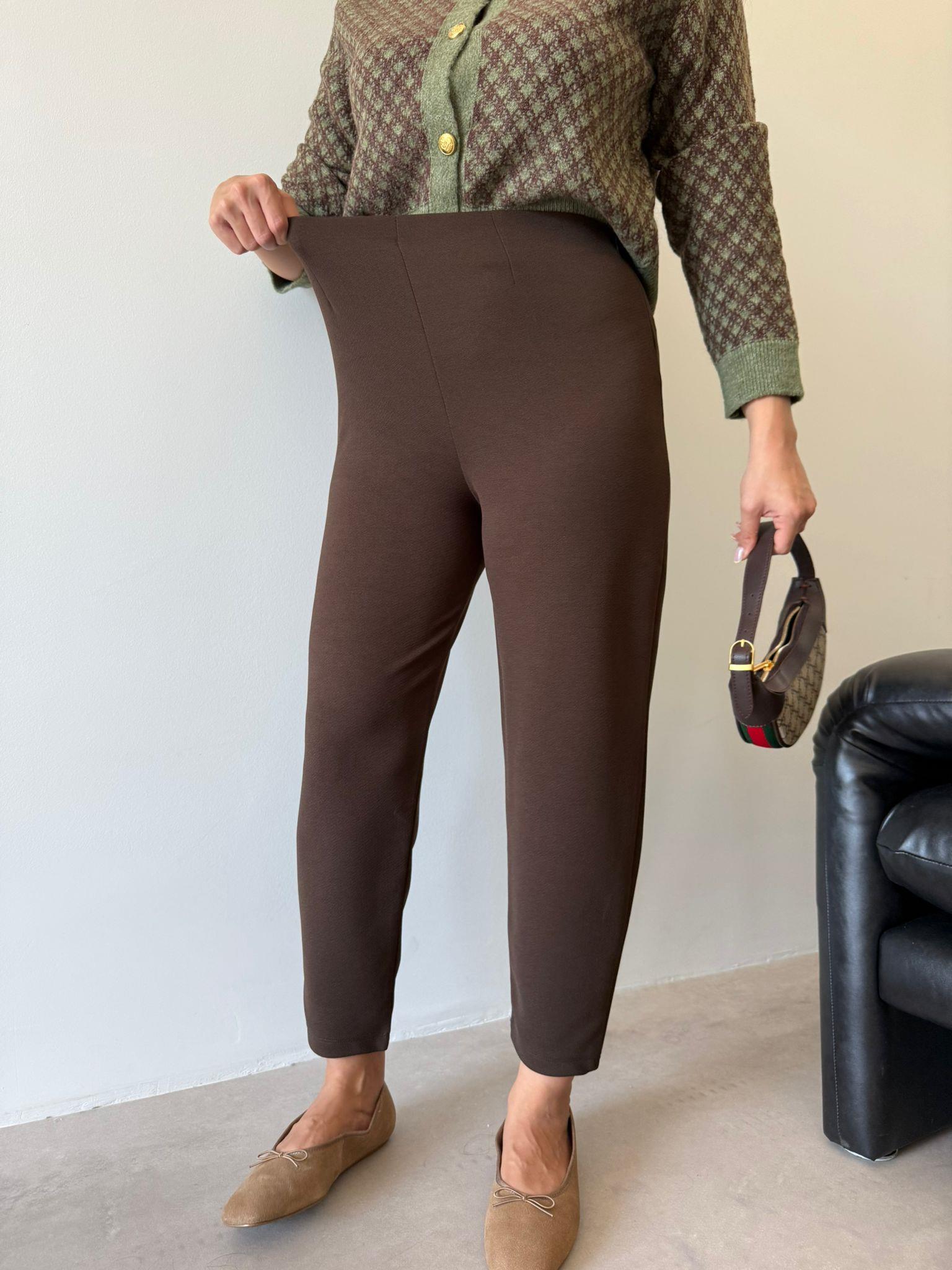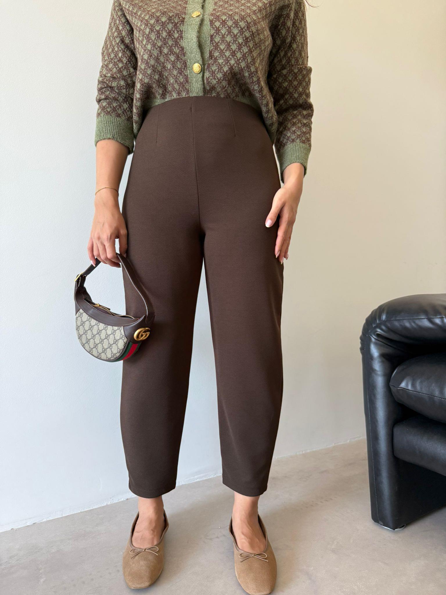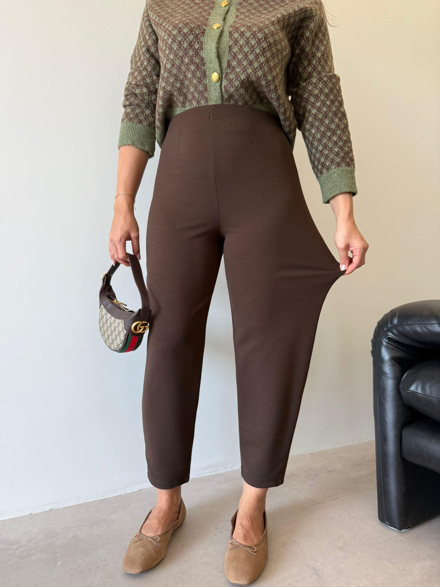 Kahve Beli Lastikli Şalvar Mona Pantolon (13273)