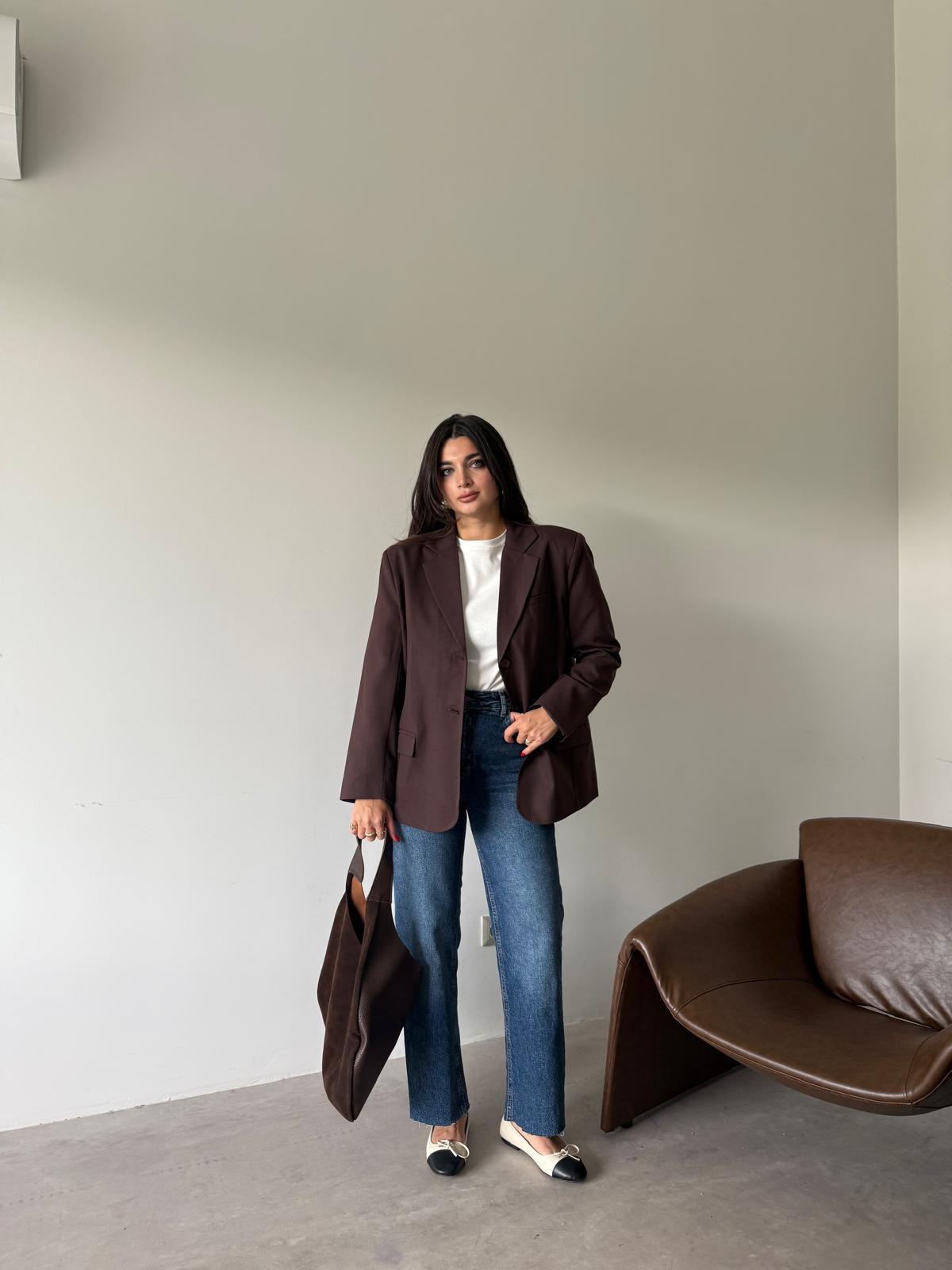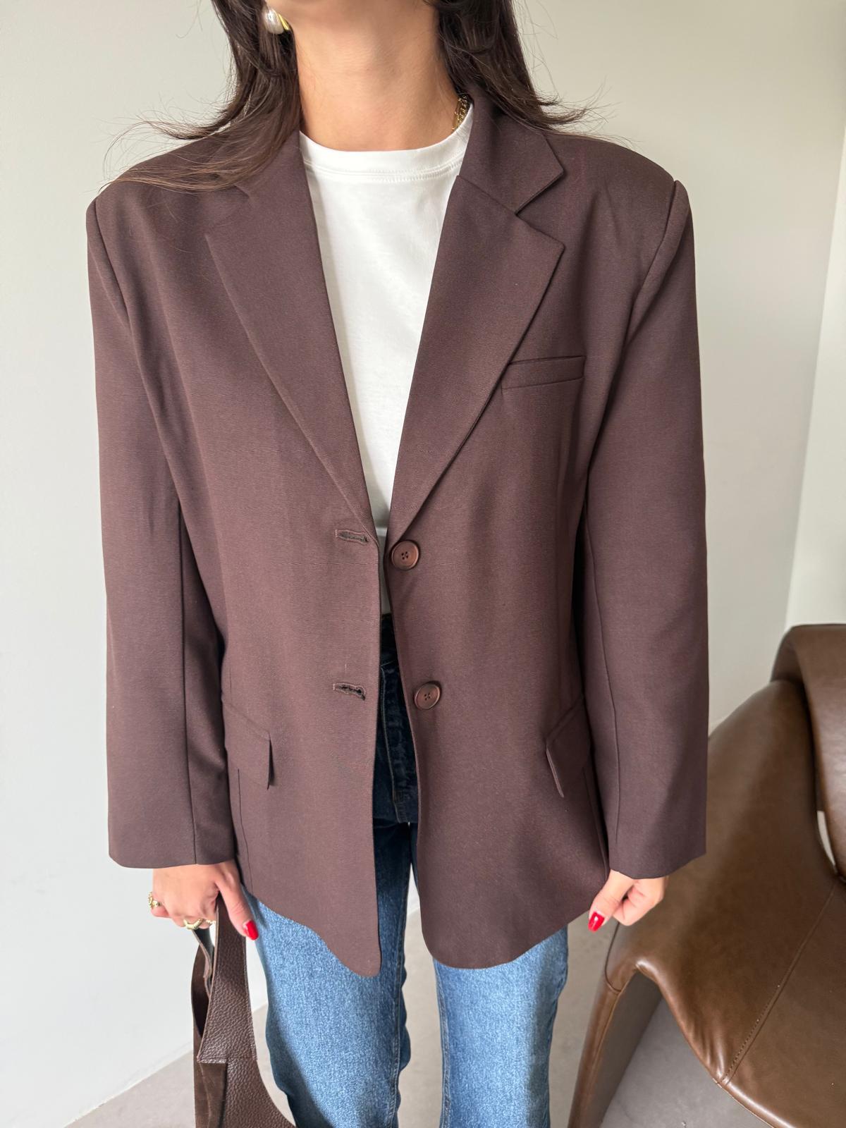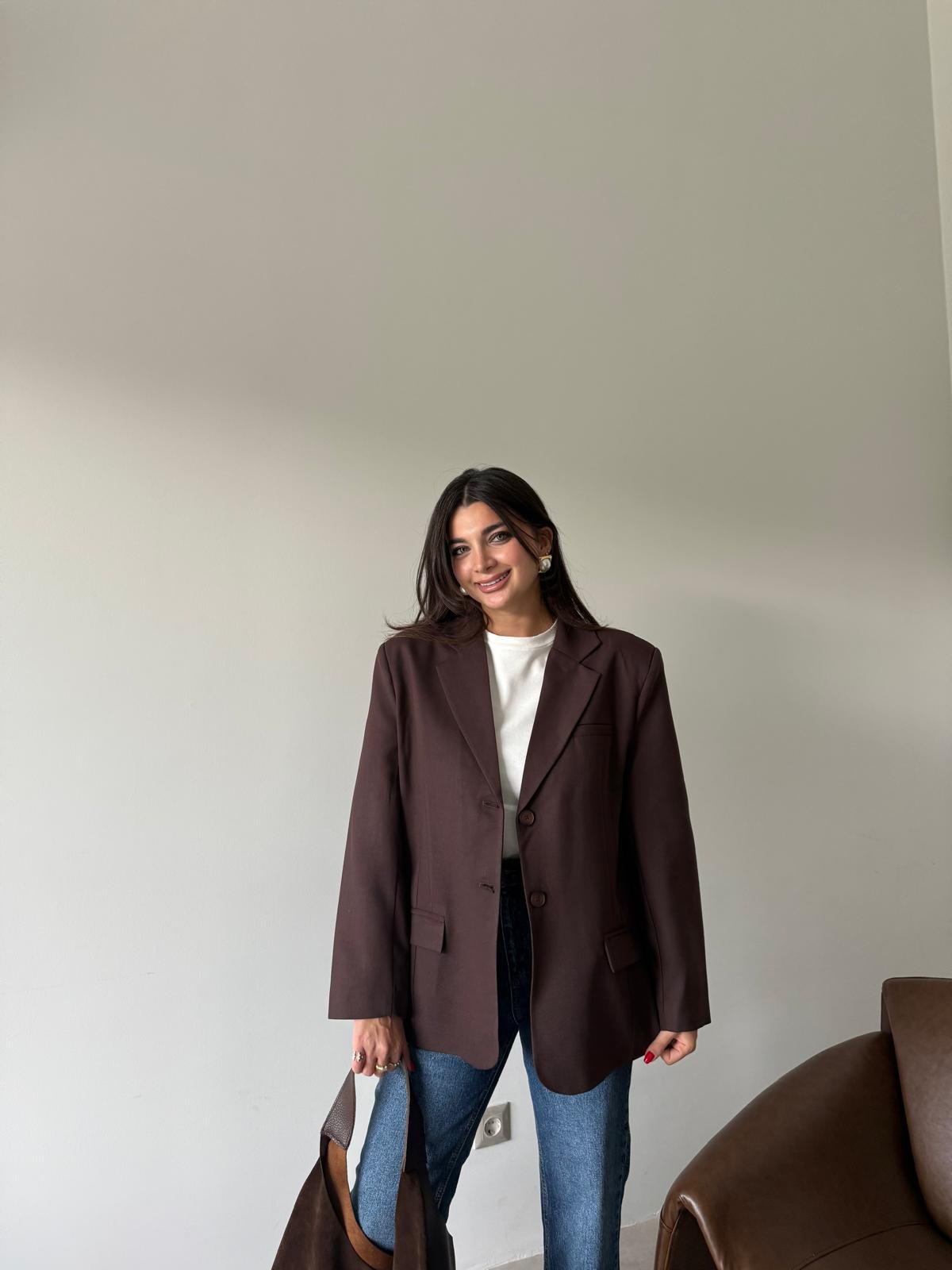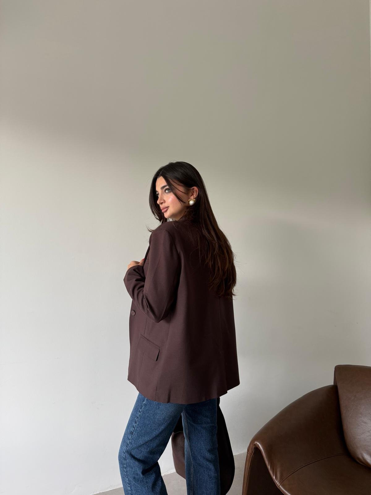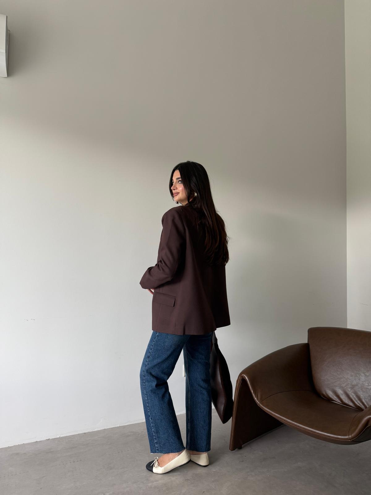 Kahve Pens Detaylı Blazer Ceket (14136)