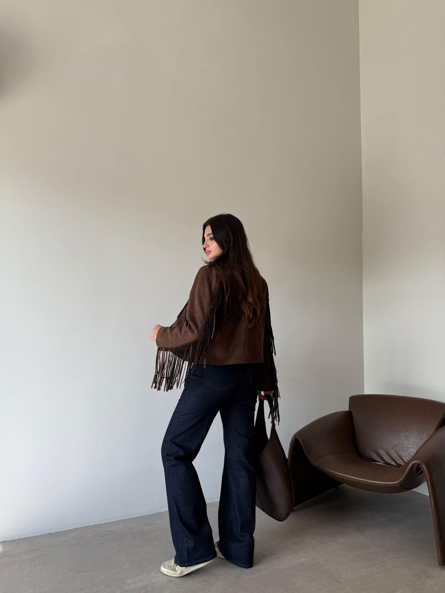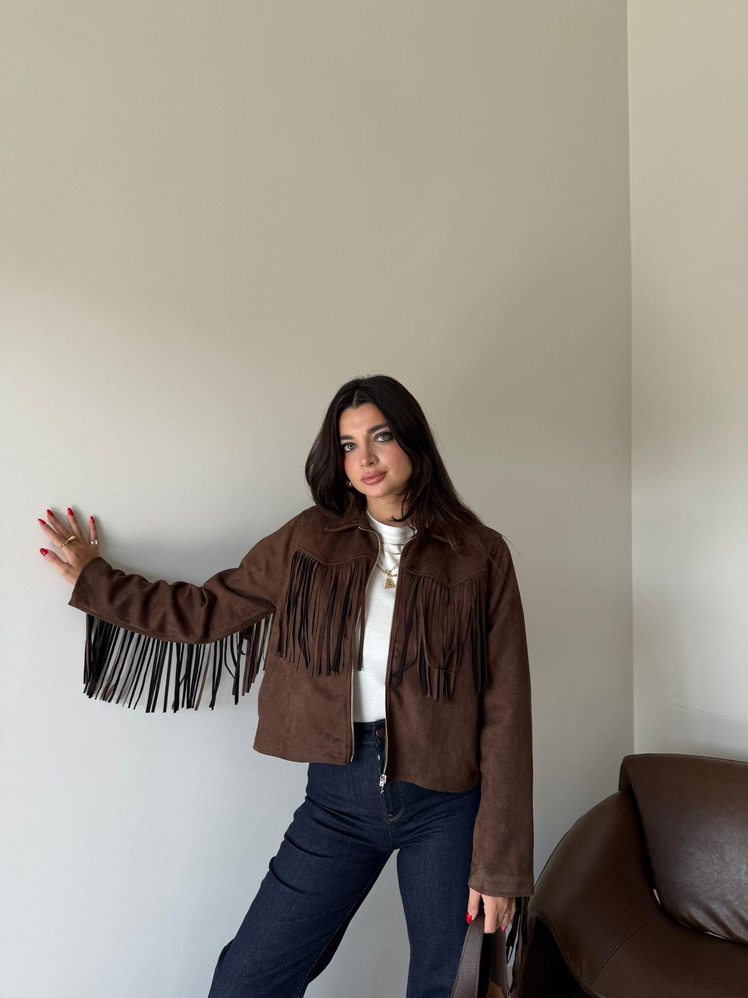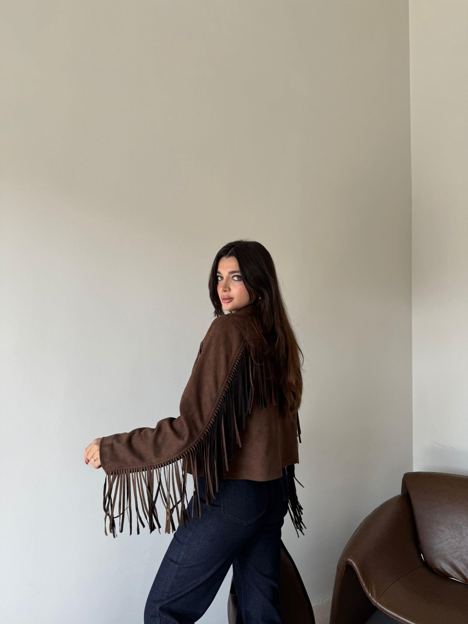 Kahve Püsküllü Süet Nova Ceket (14155)
