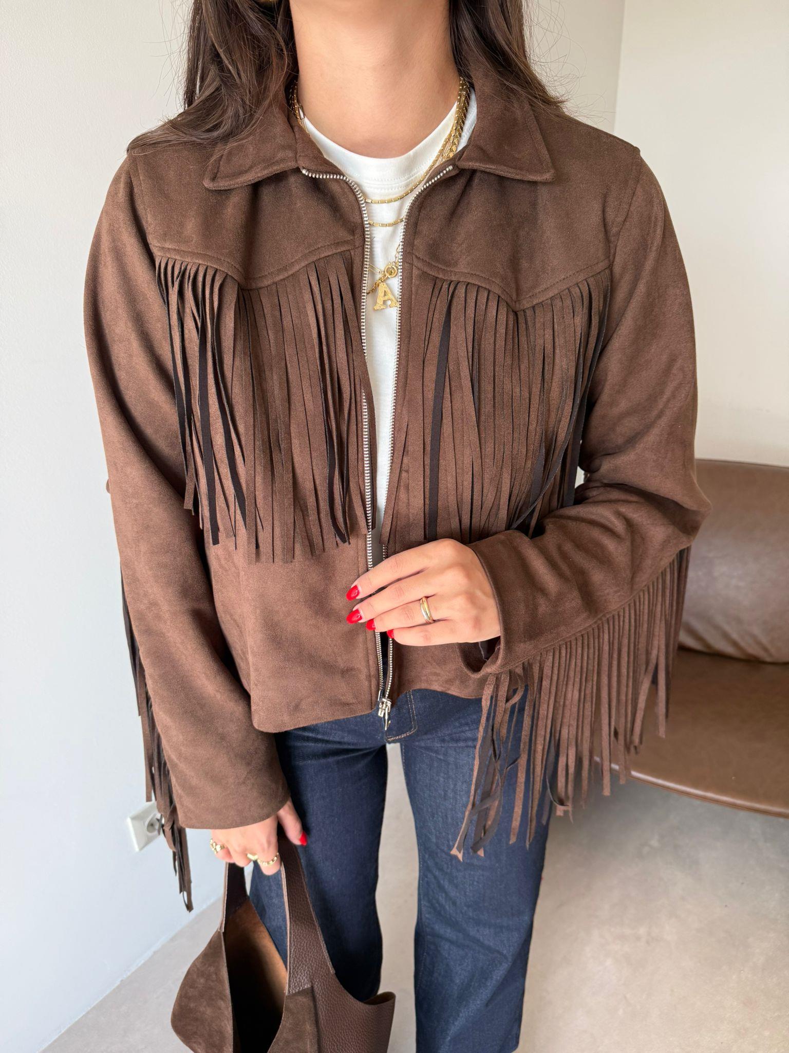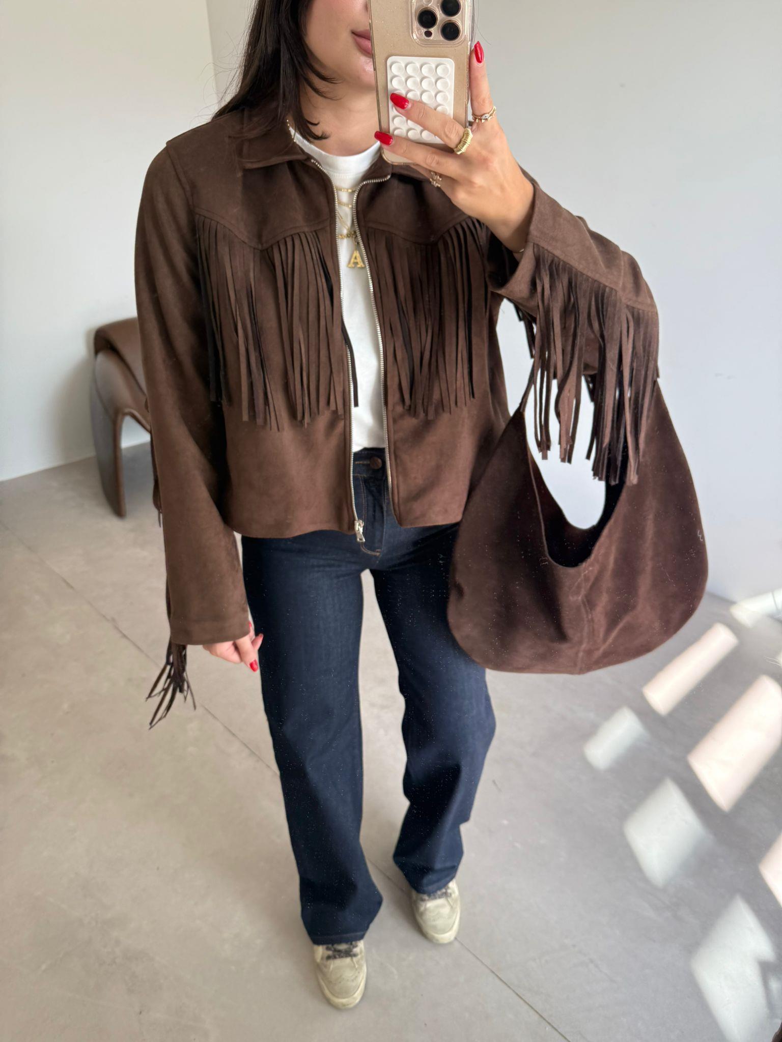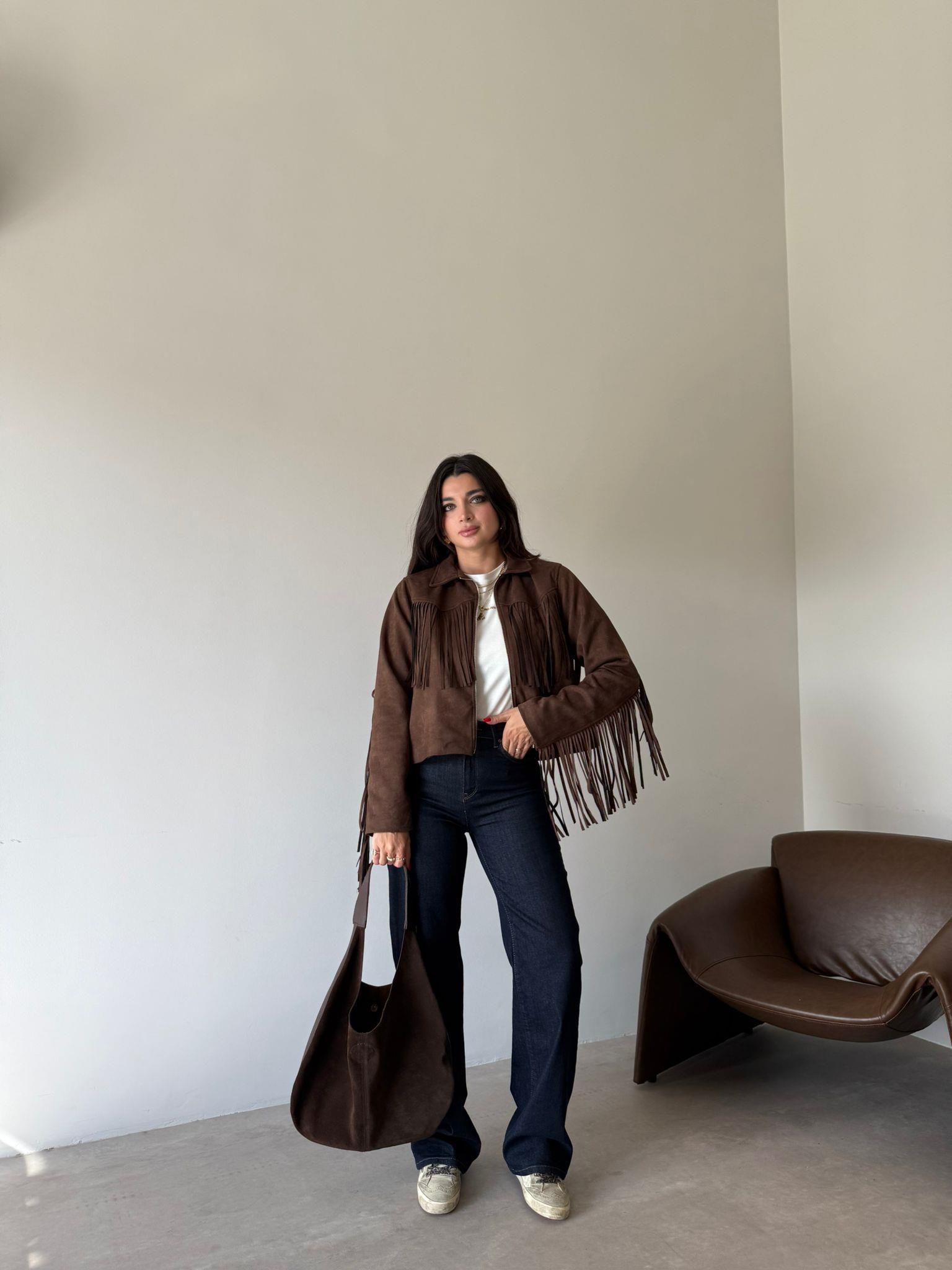 Kahve Püsküllü Süet Nova Ceket (14155)
