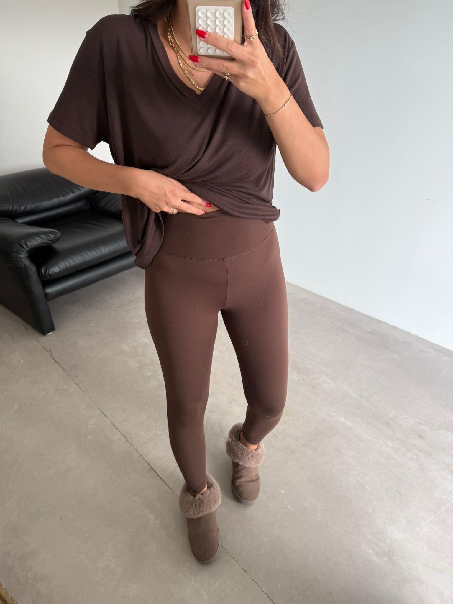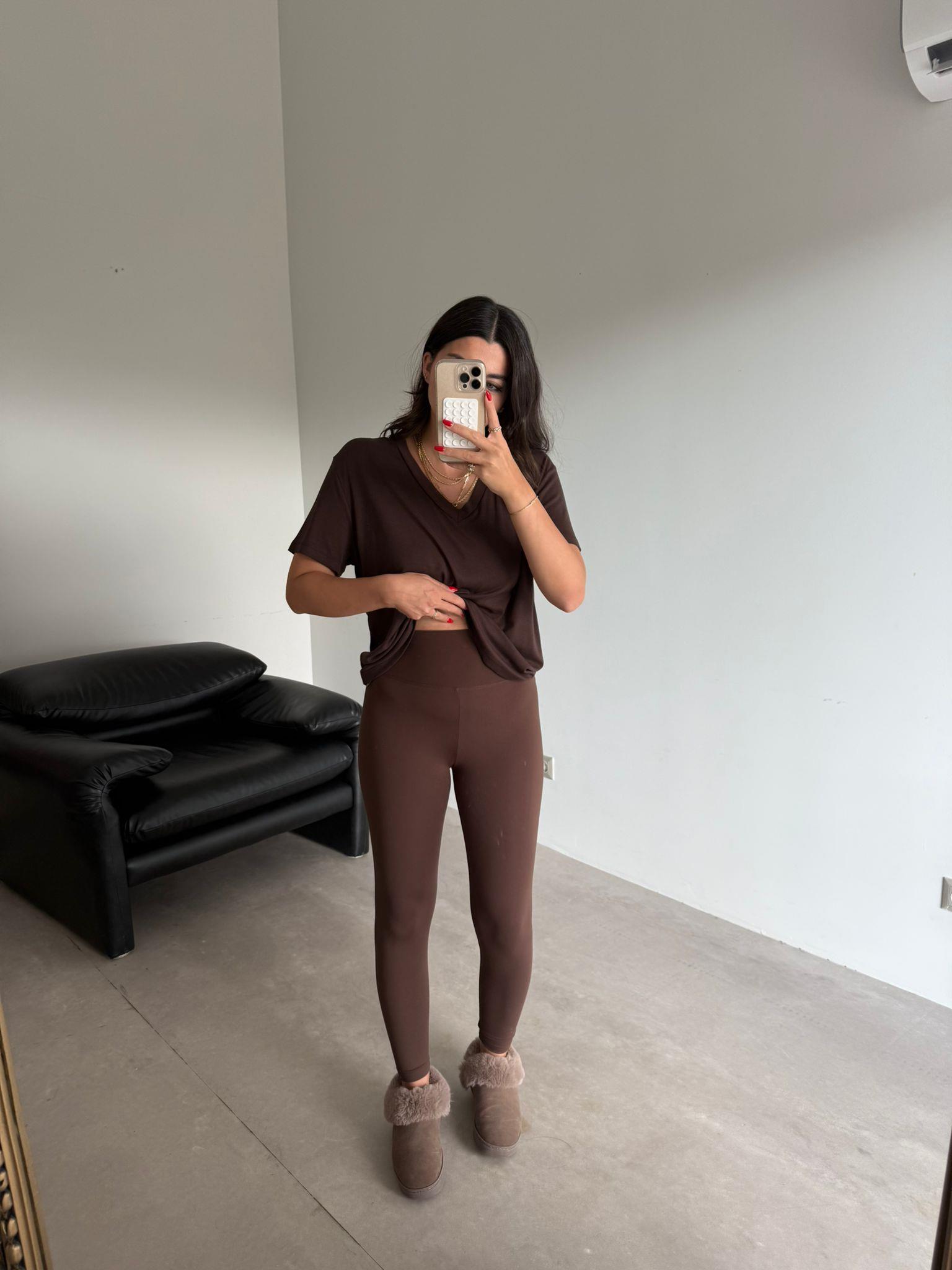 Kahverengi Toparlayıcı Likralı Sporcu Tayt (14085)