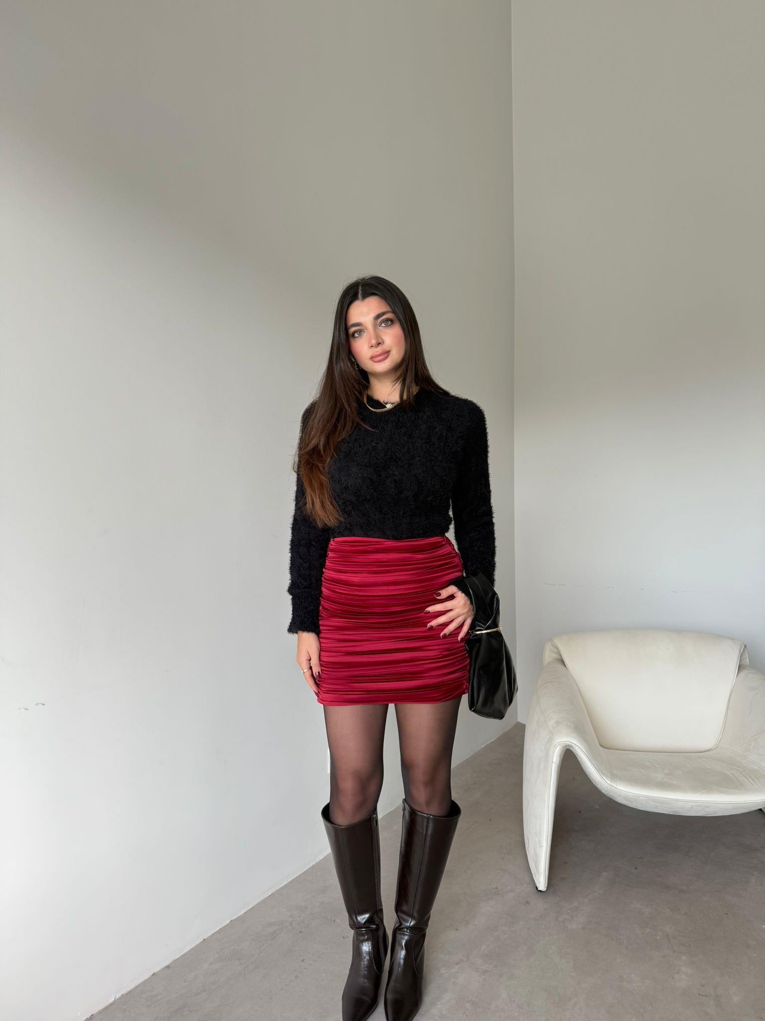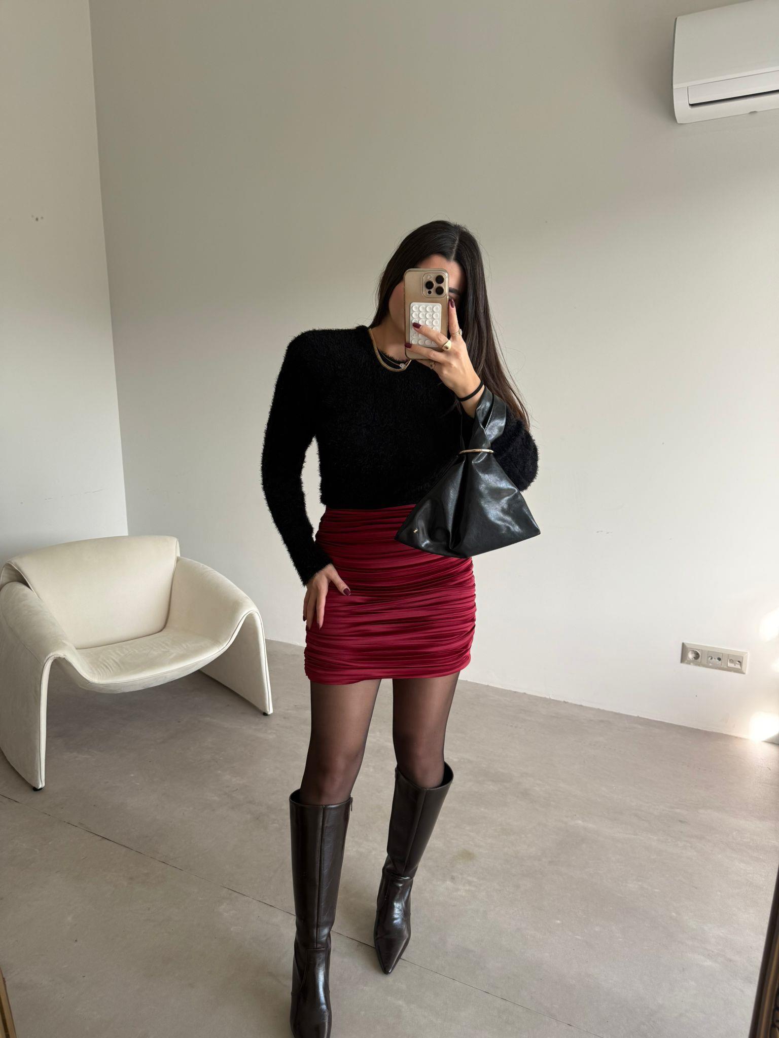 Kırmızı Drapeli Mini Etek (14363)