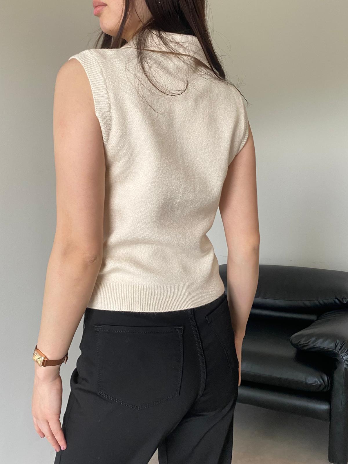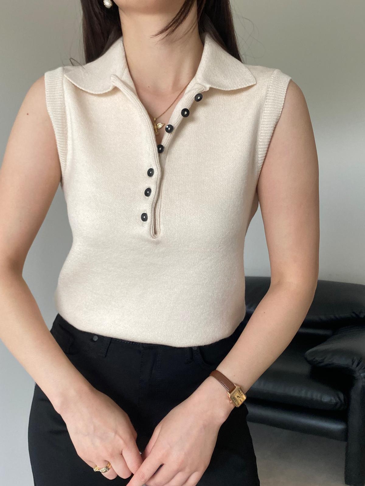 Krem Düğme Detaylı Triko Süveter (14118)
