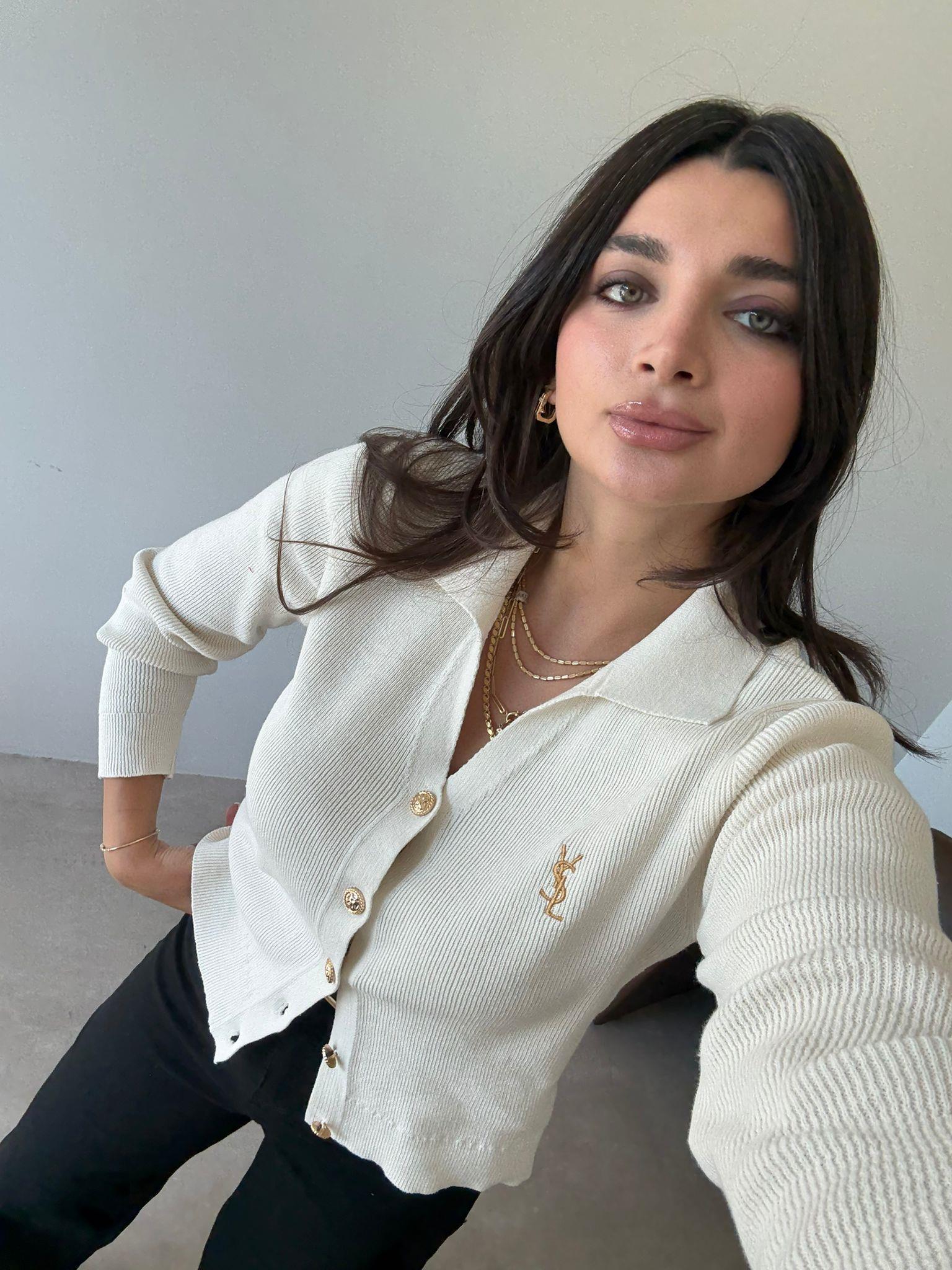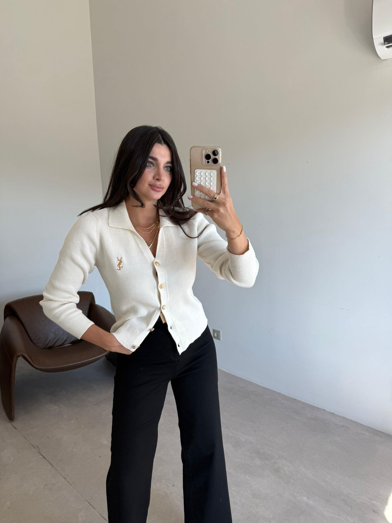 Krem Gold Düğmeli Fitilli Hırka (14210)