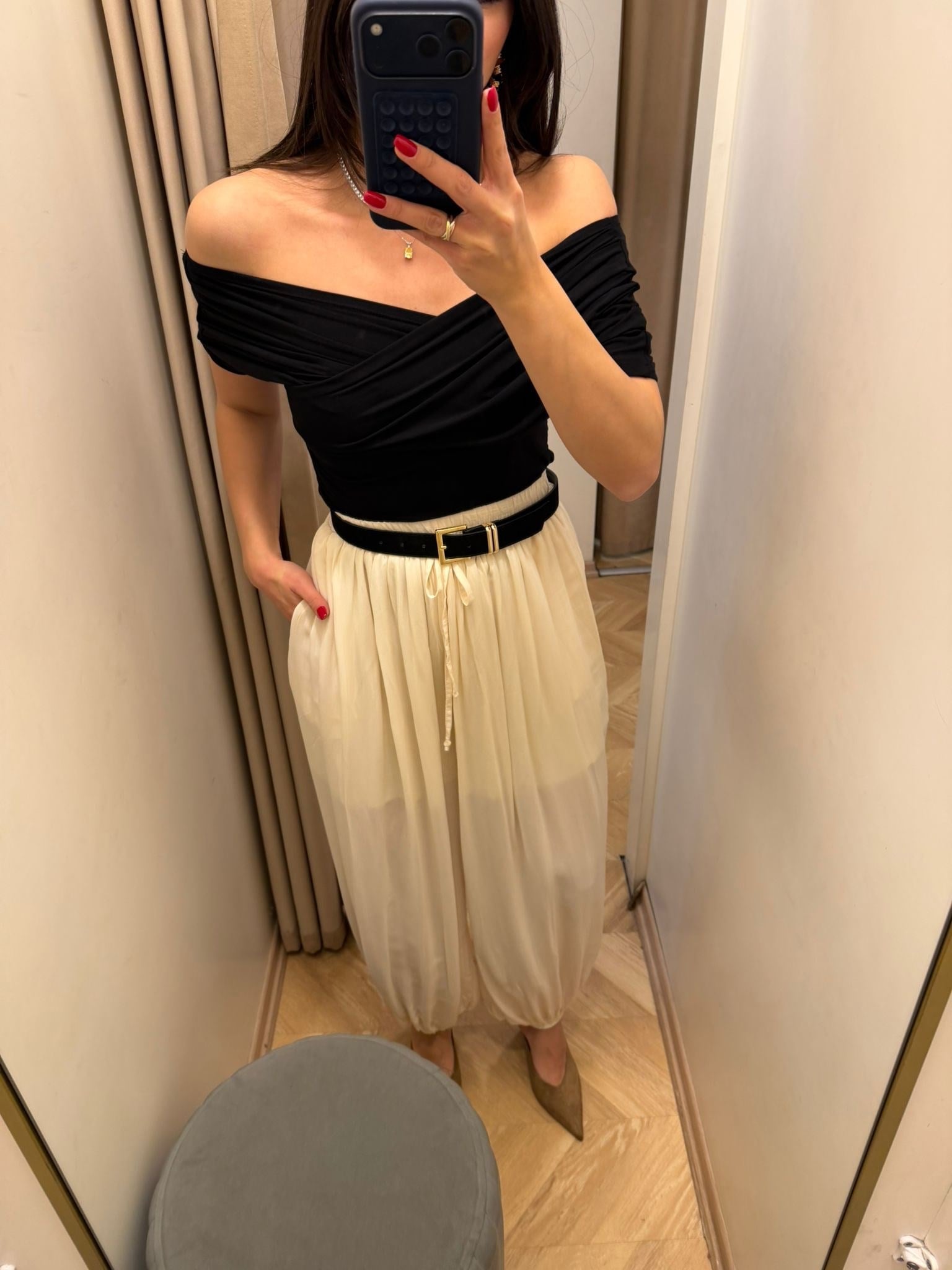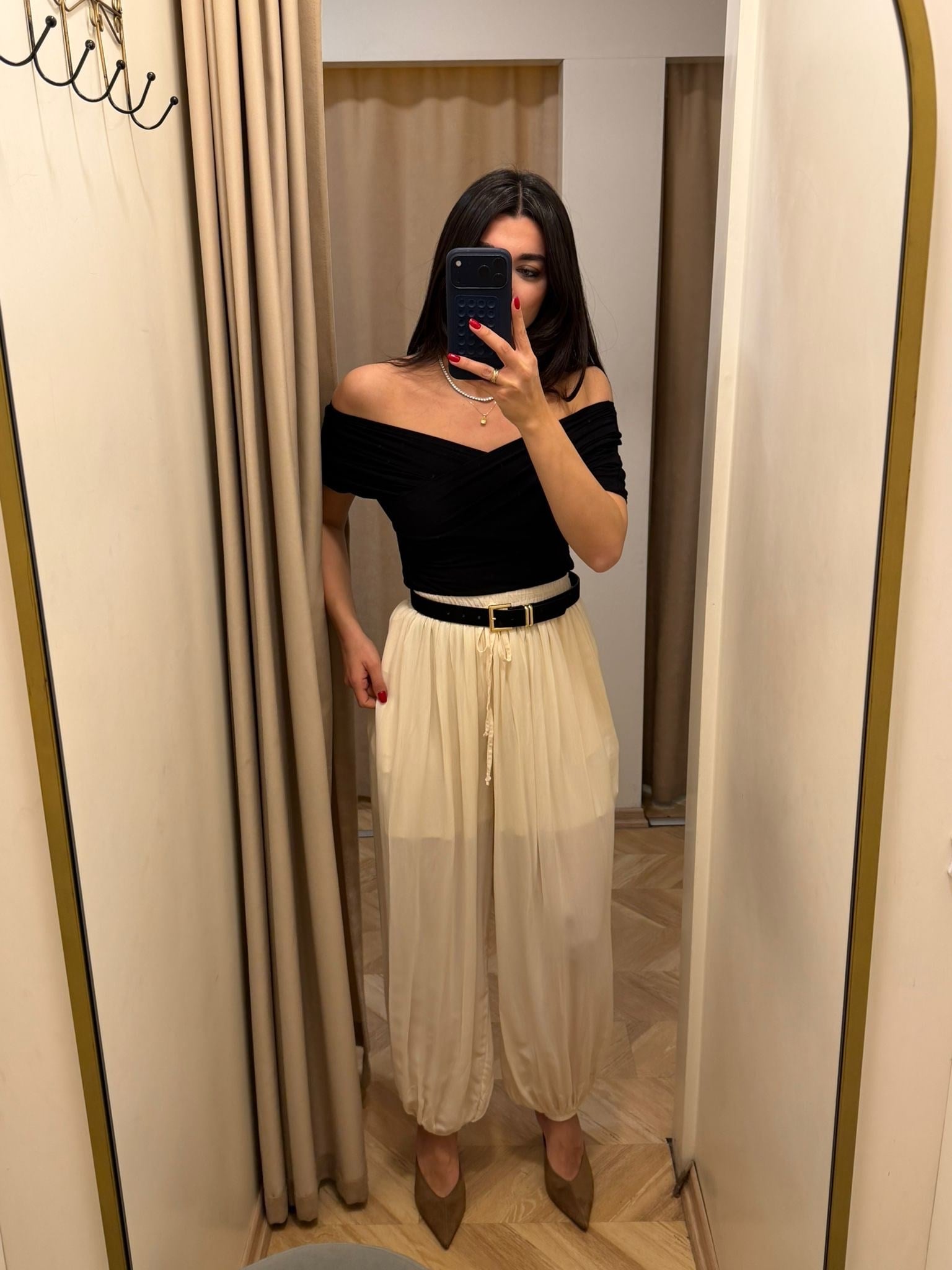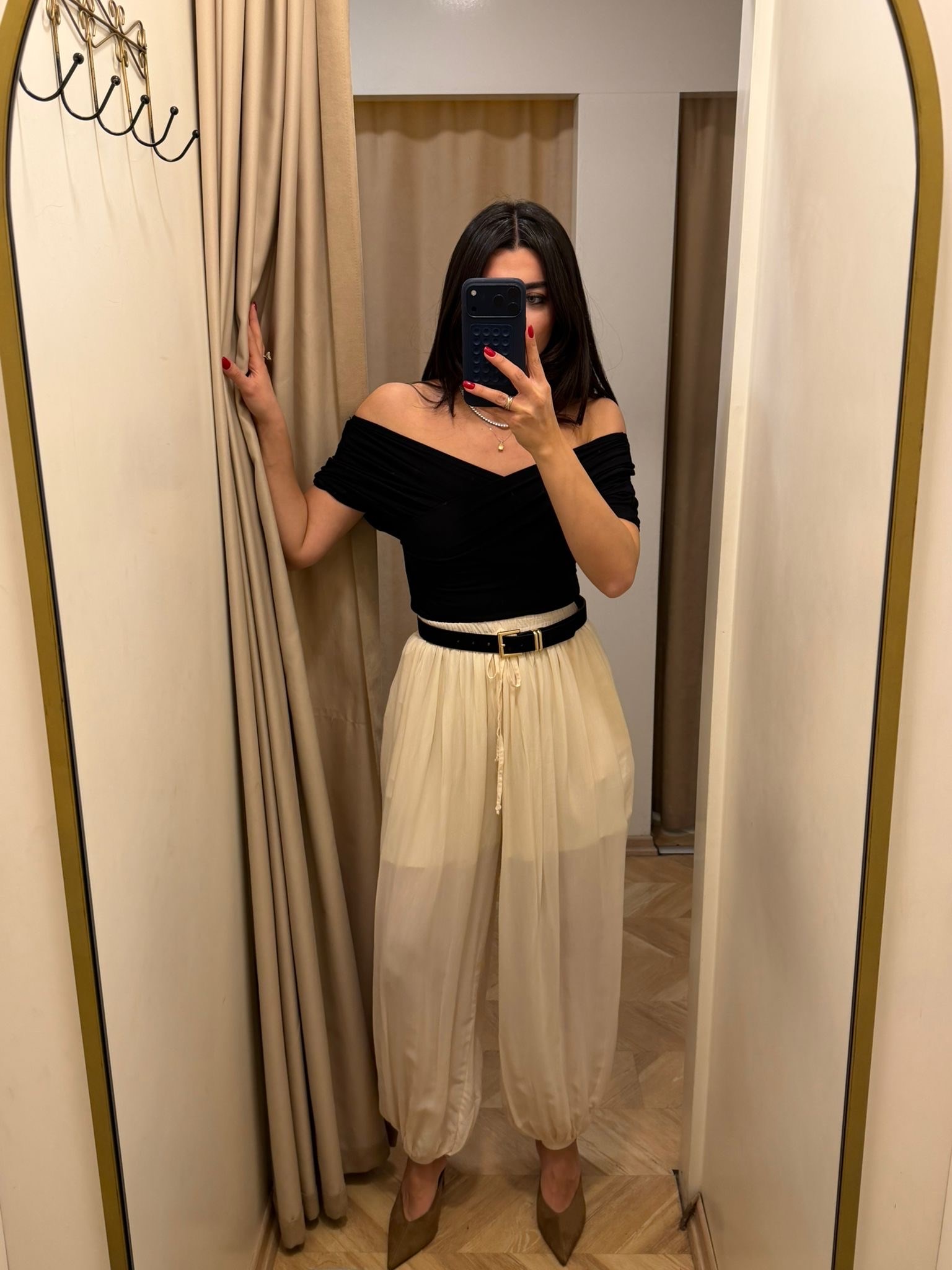 Krem Paçası Lastikli Şalvar Pantolon (15130)