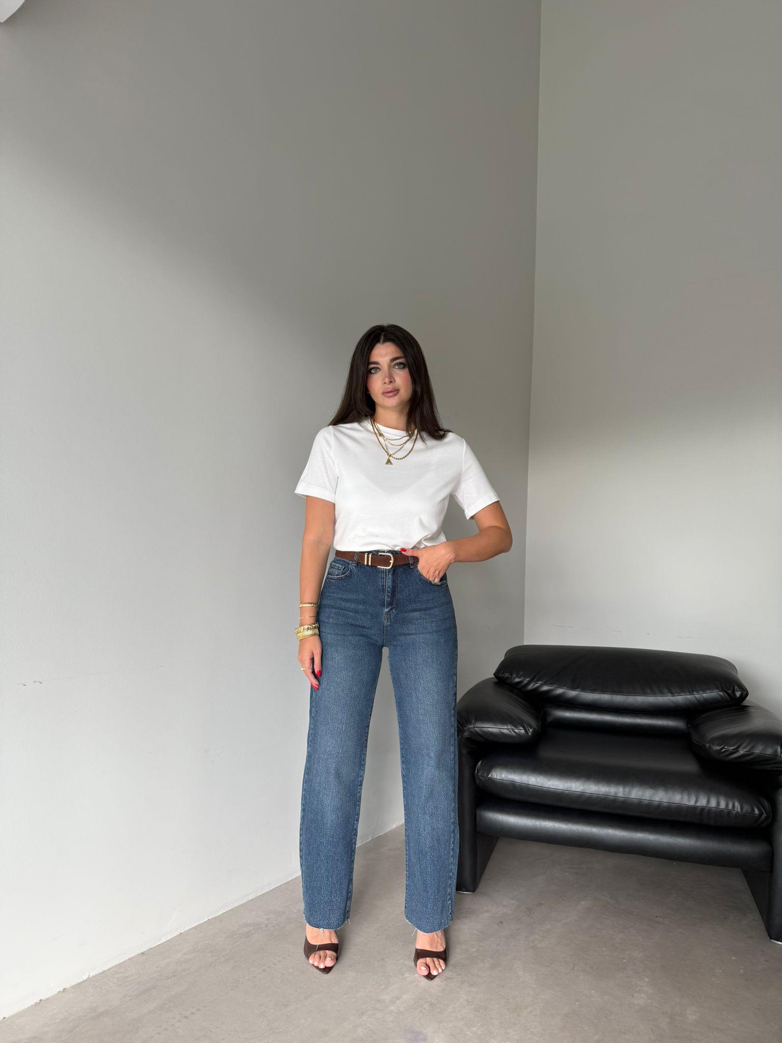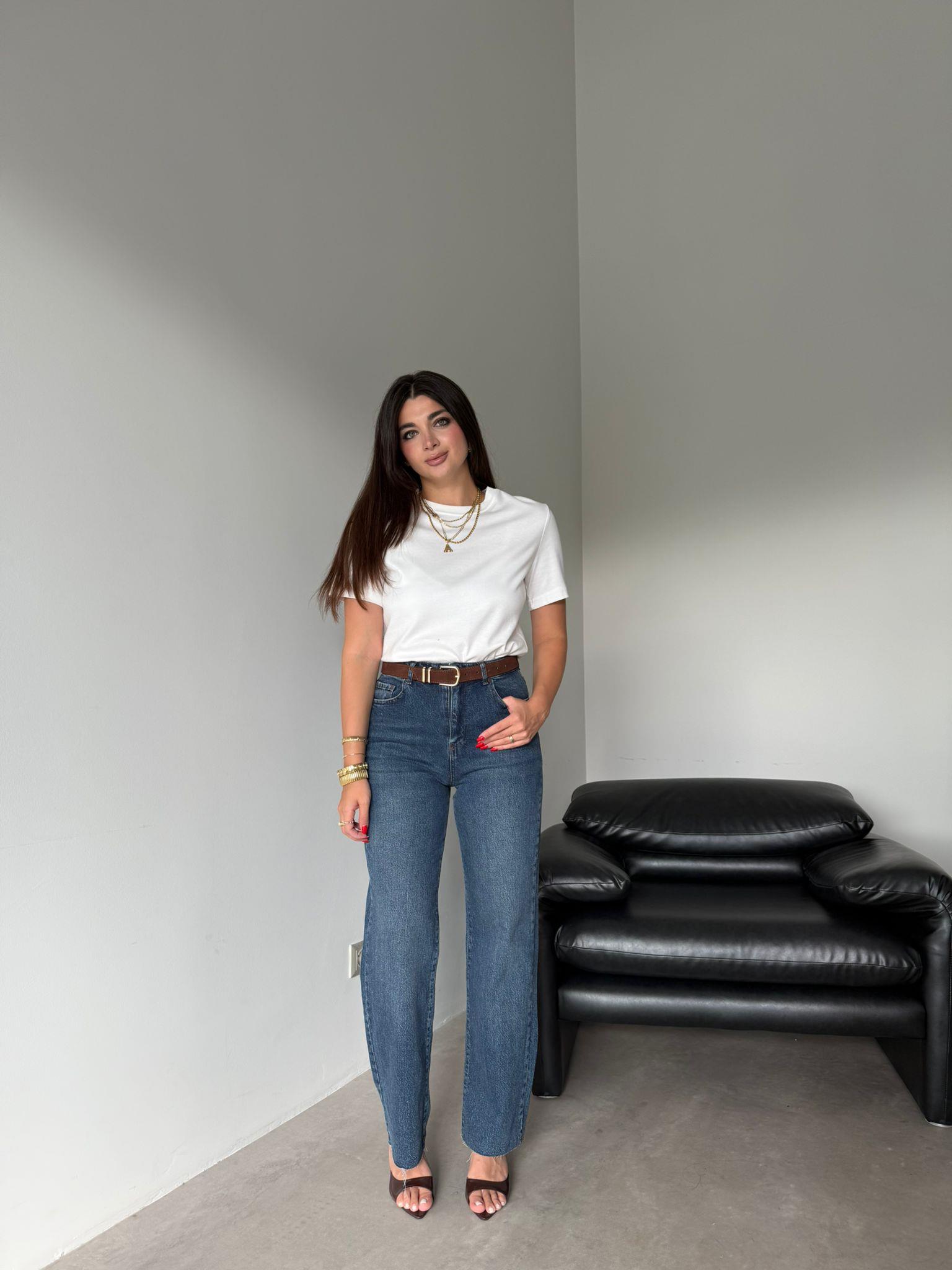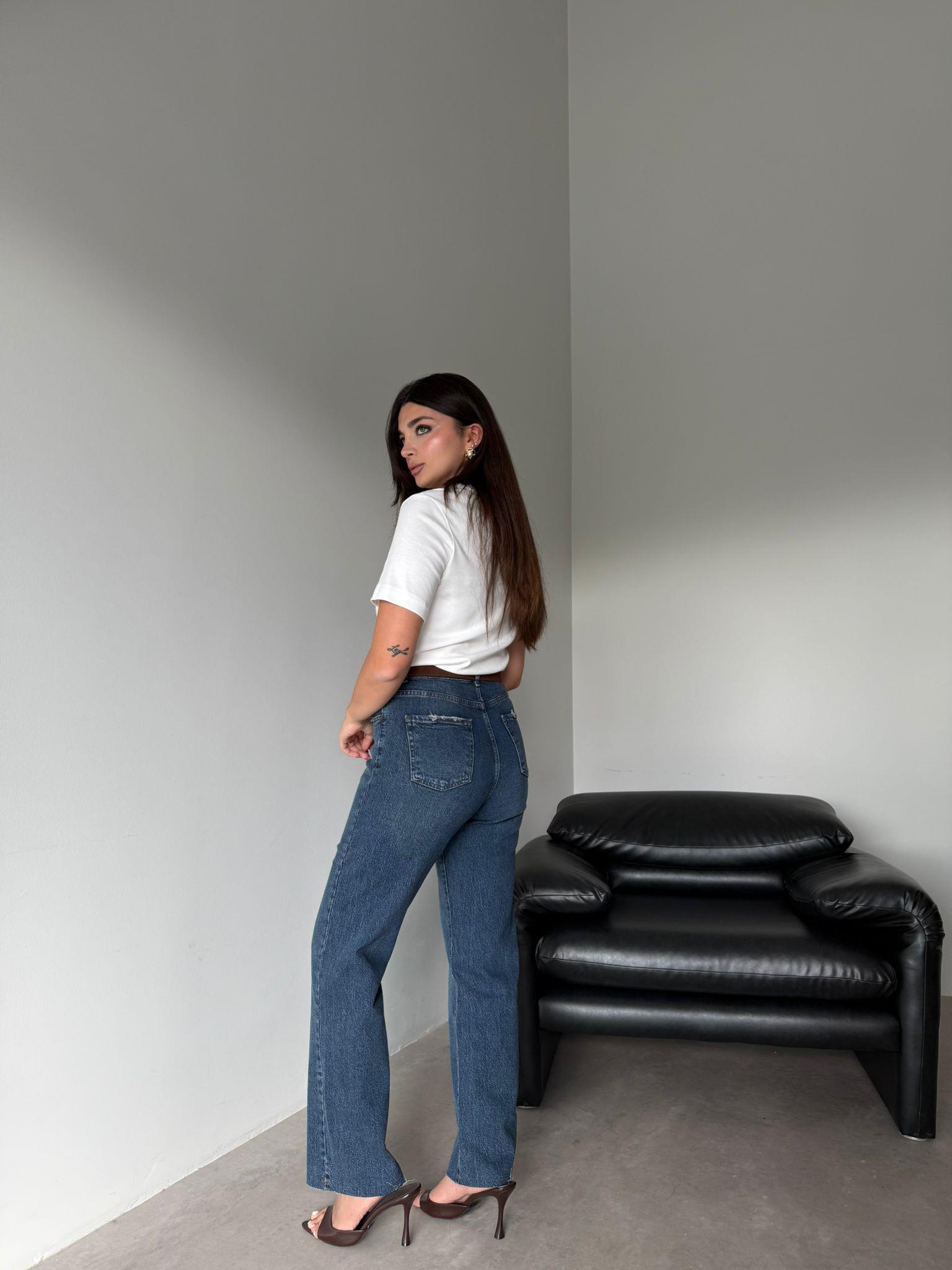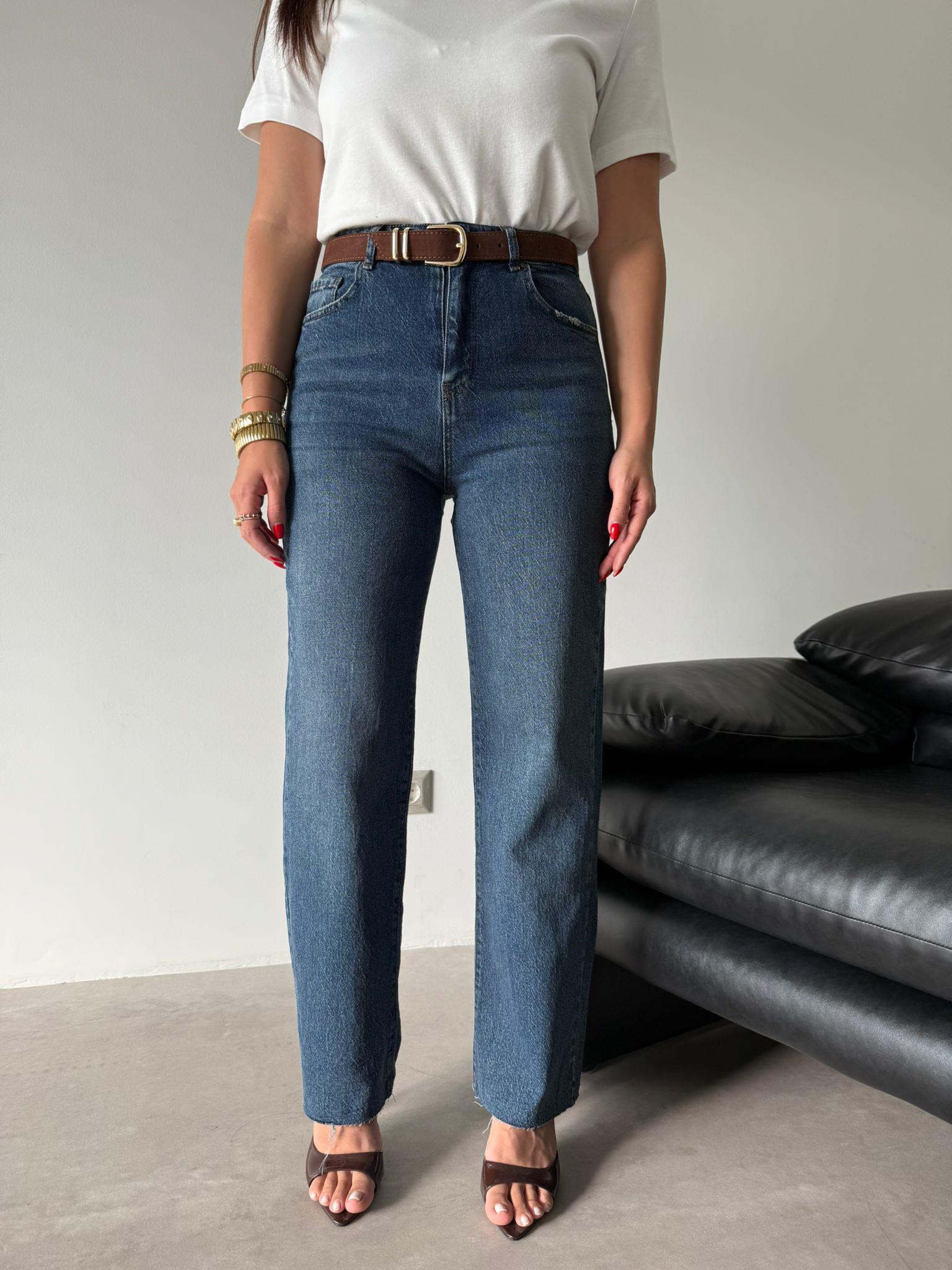 Mavi Kemerli Kesik Paça Jean (14104)