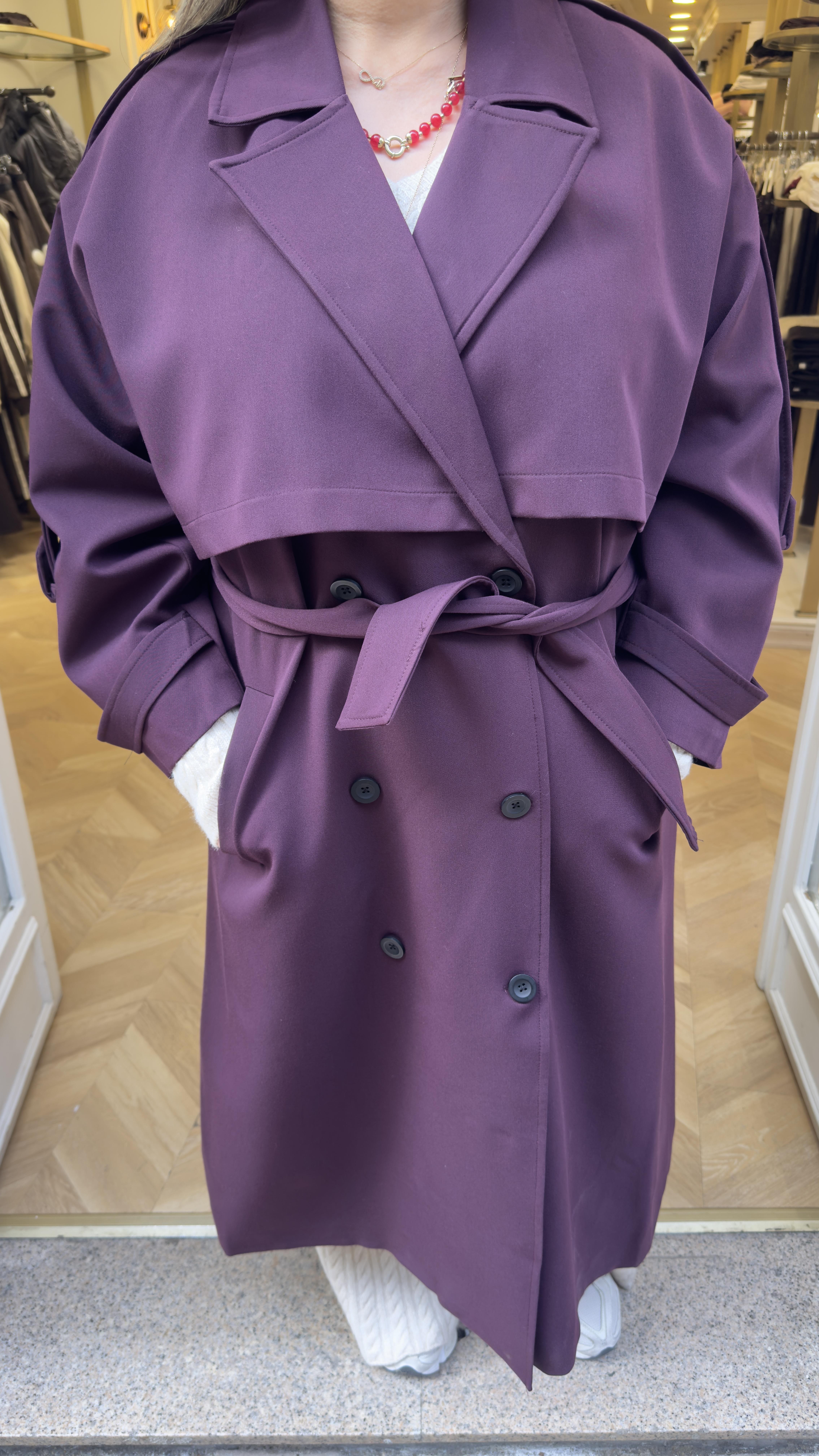 Mürdüm Oversize Astarlı Yumuşacık Aren Trenç (14950)