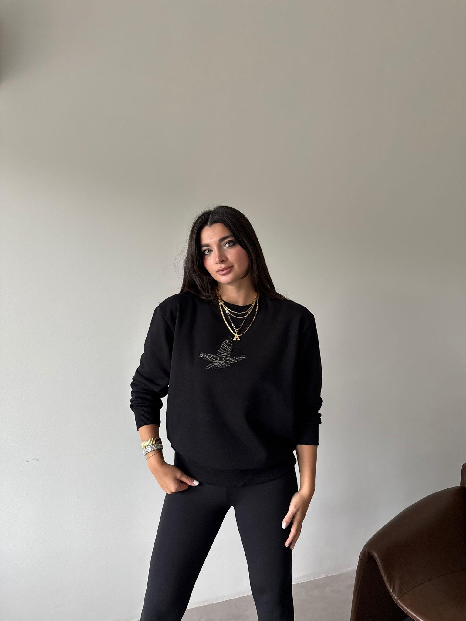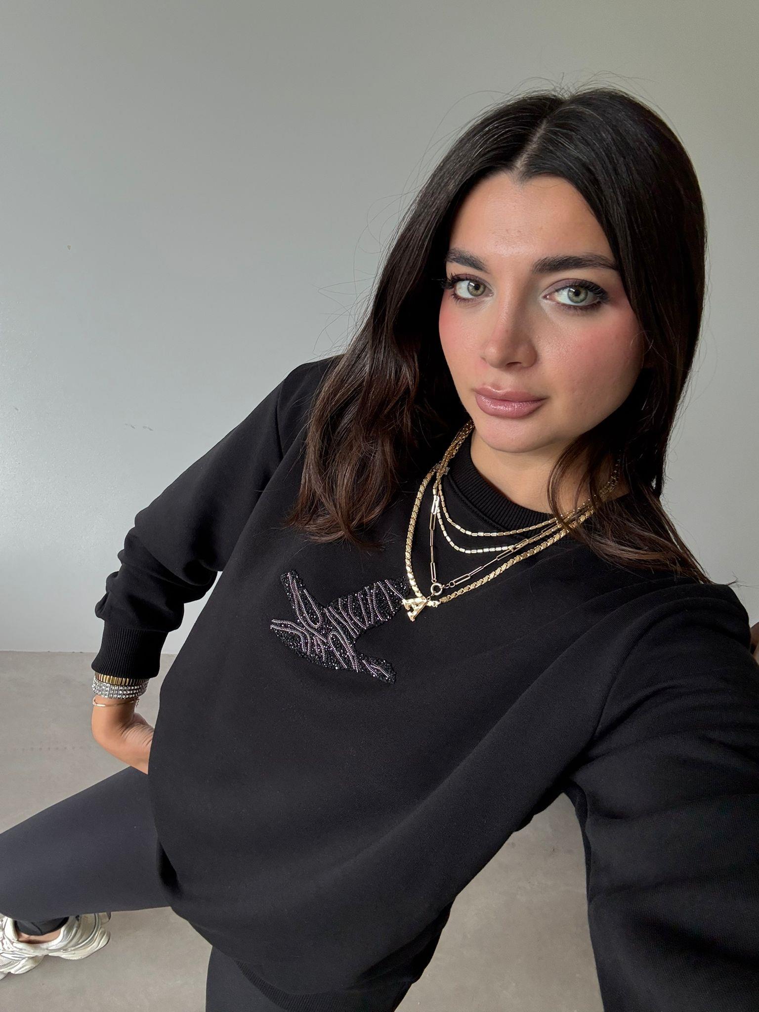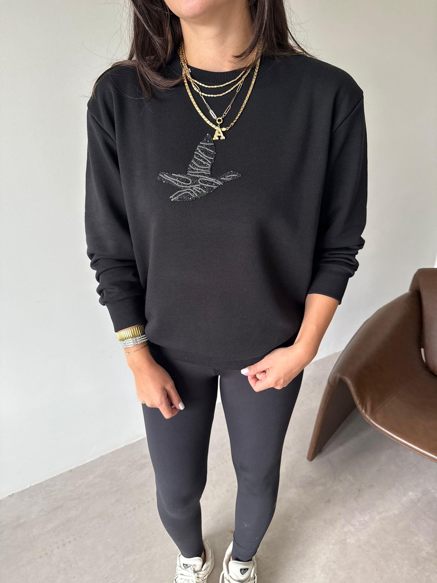 Siyah Bird Baskılı Sweat (14199)