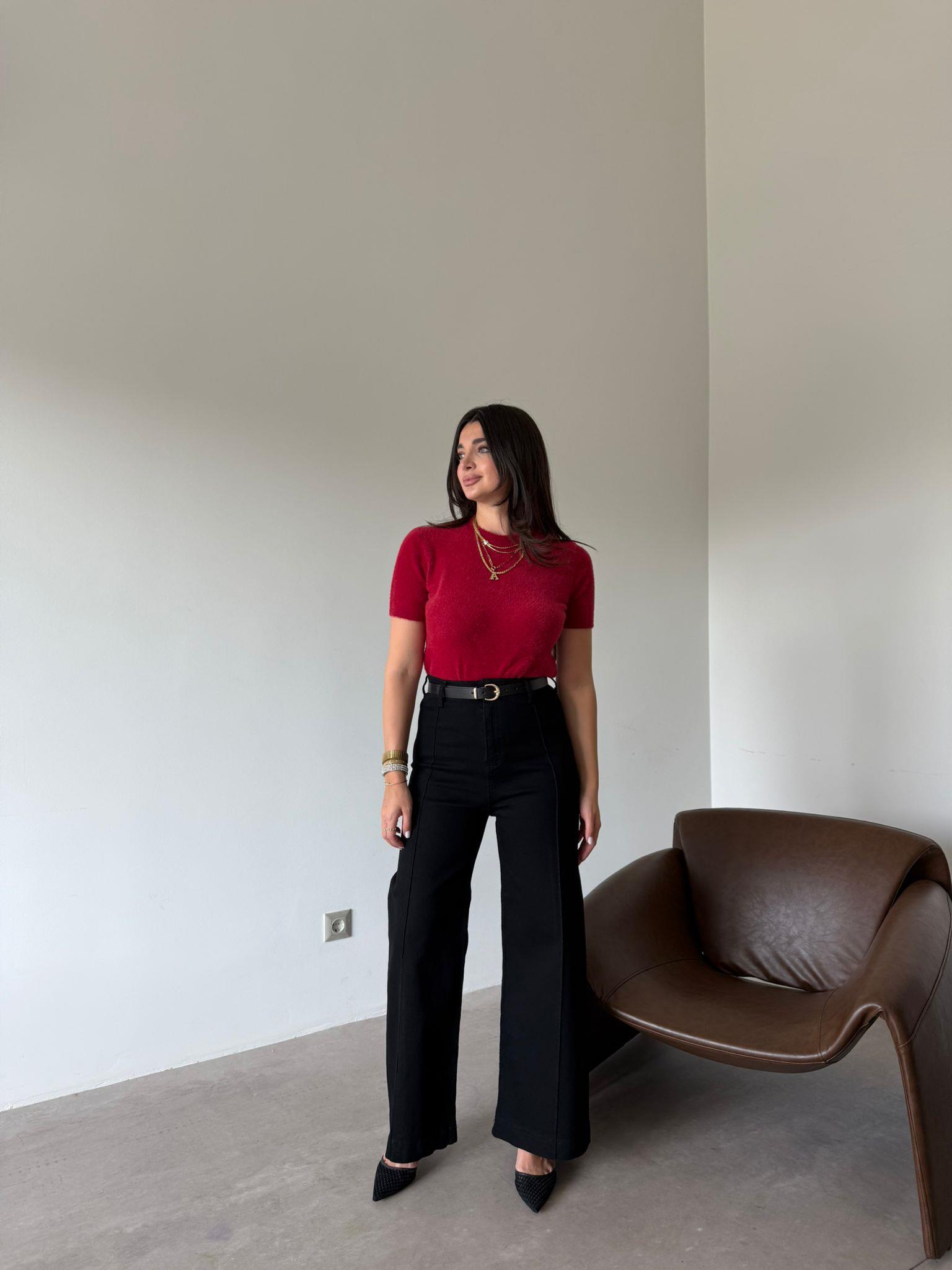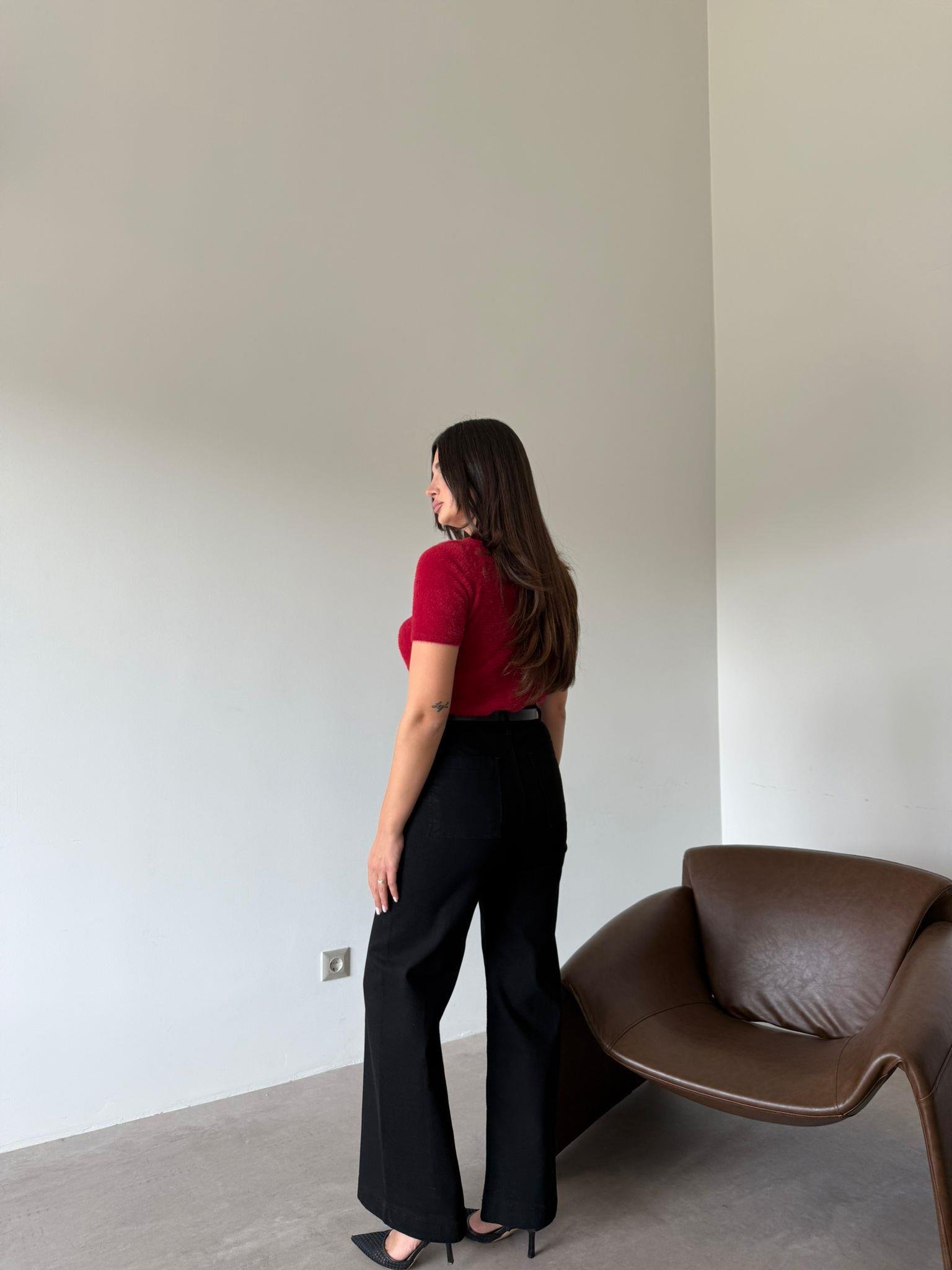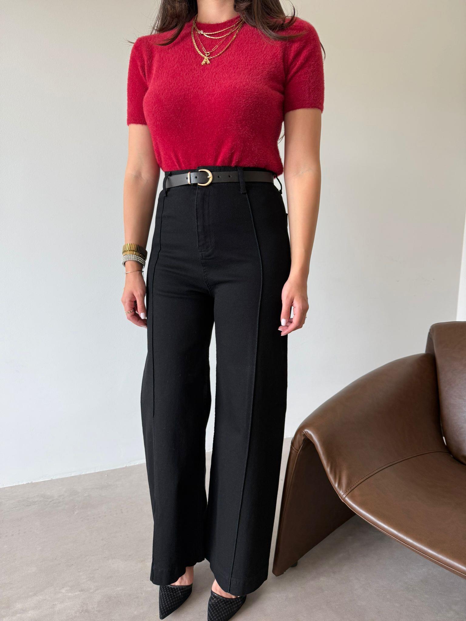 Siyah Biye Detaylı Kemerli Jean (14226)