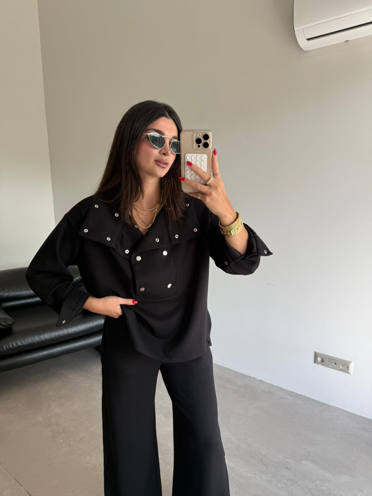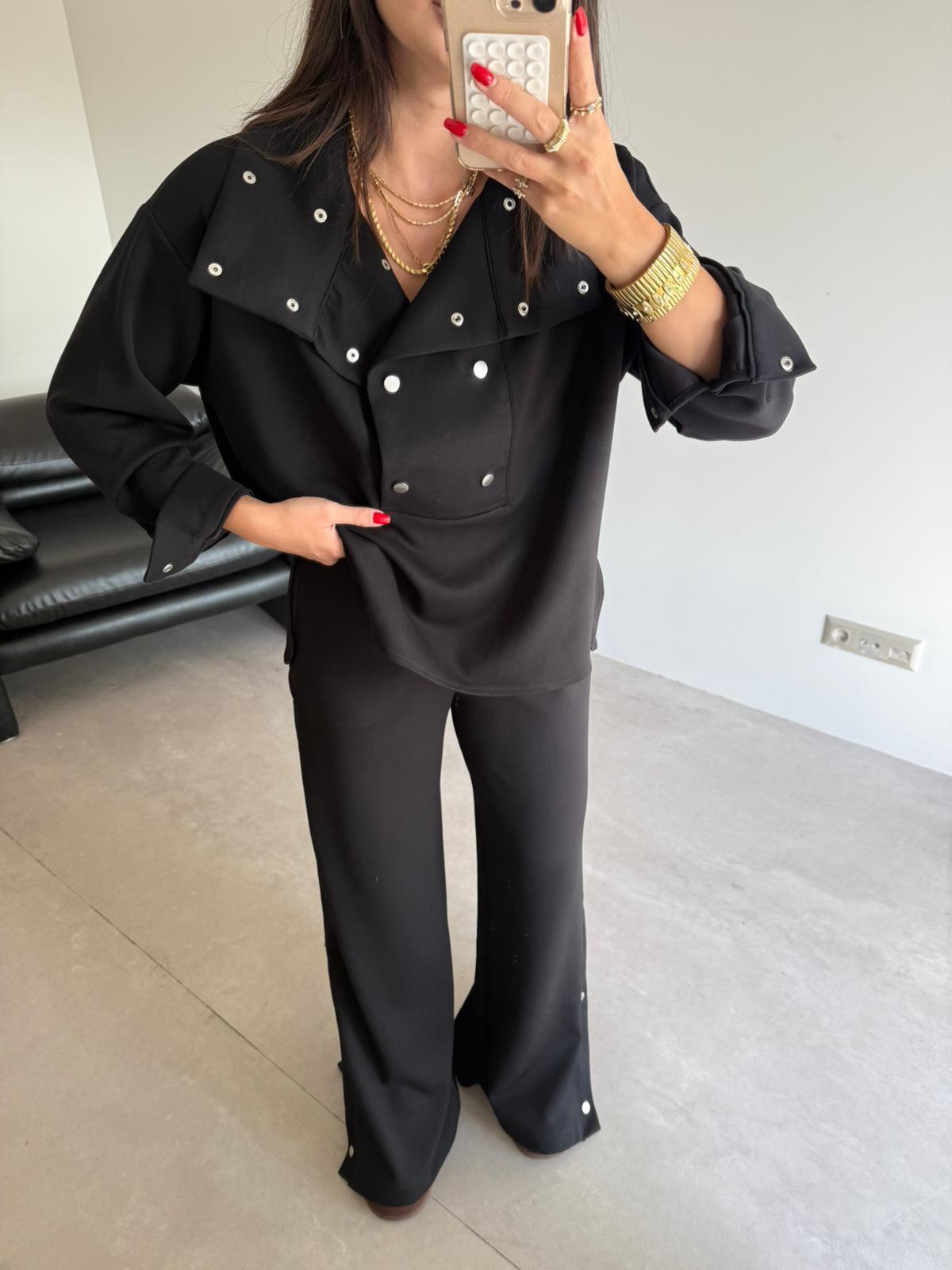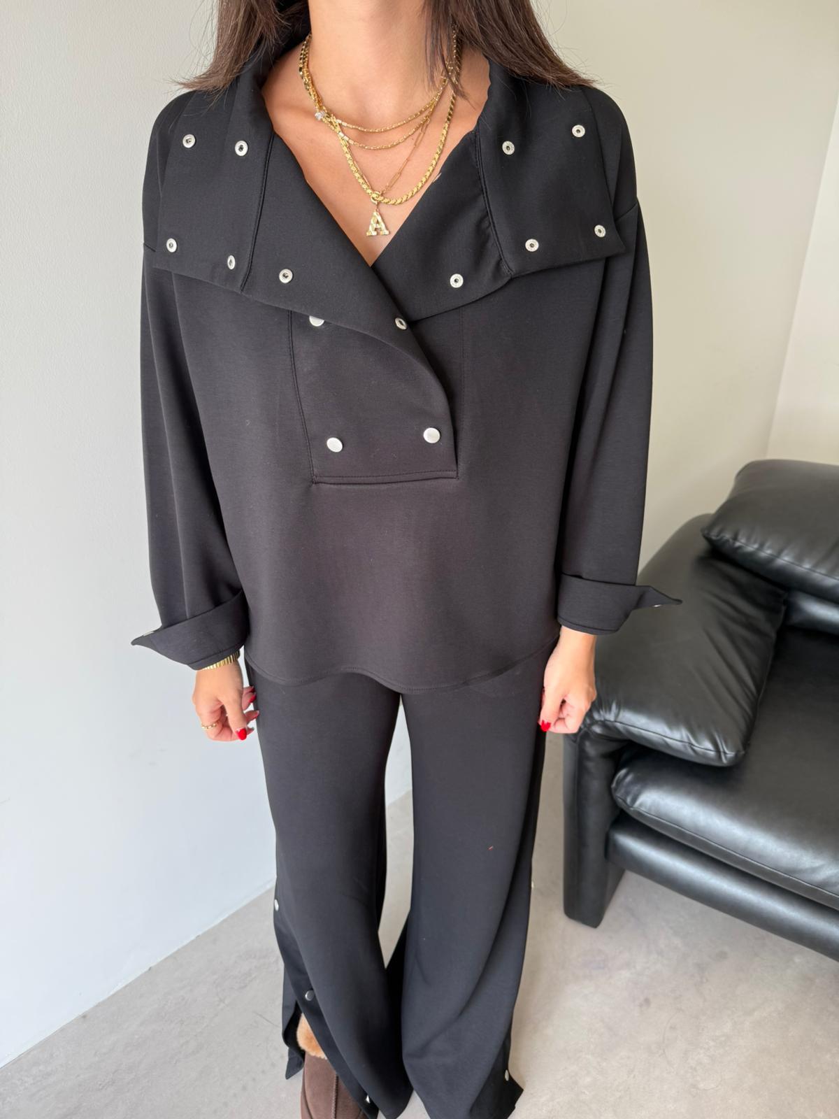 Siyah Çıtçıt Detaylı Premium Kalite Modal Takım (14097)