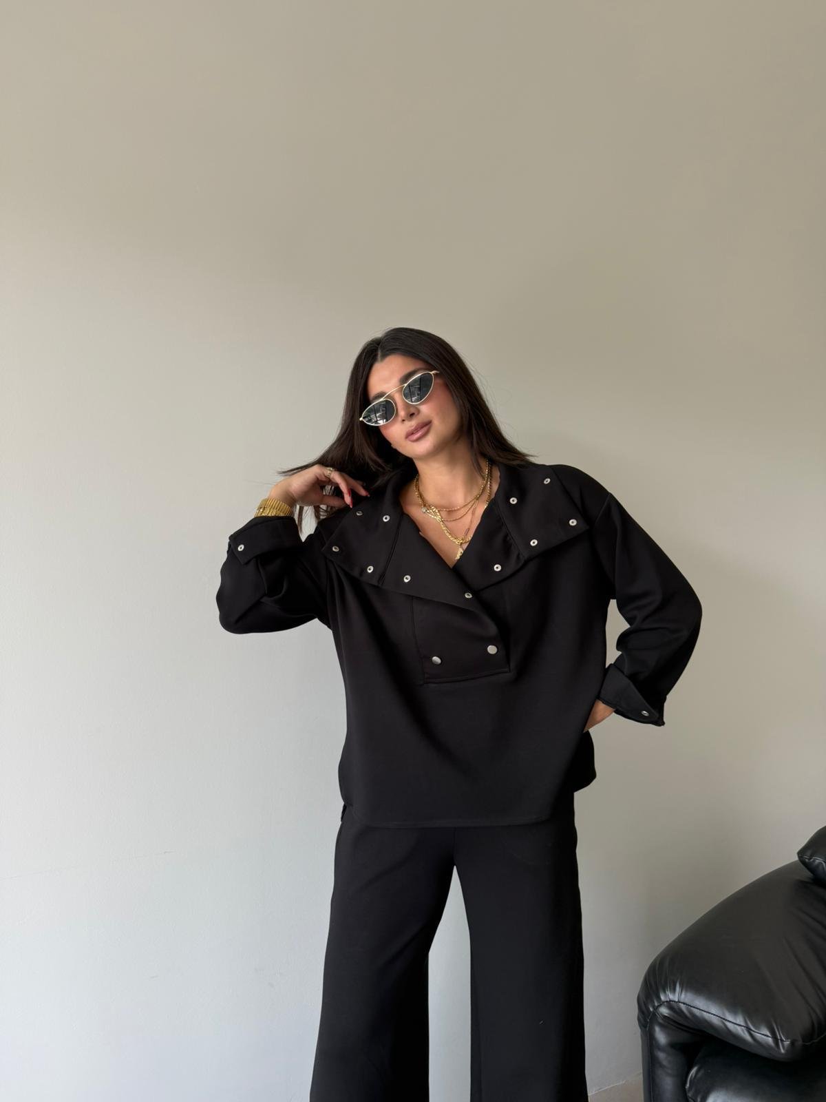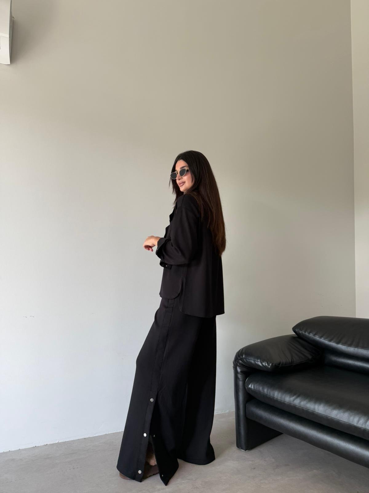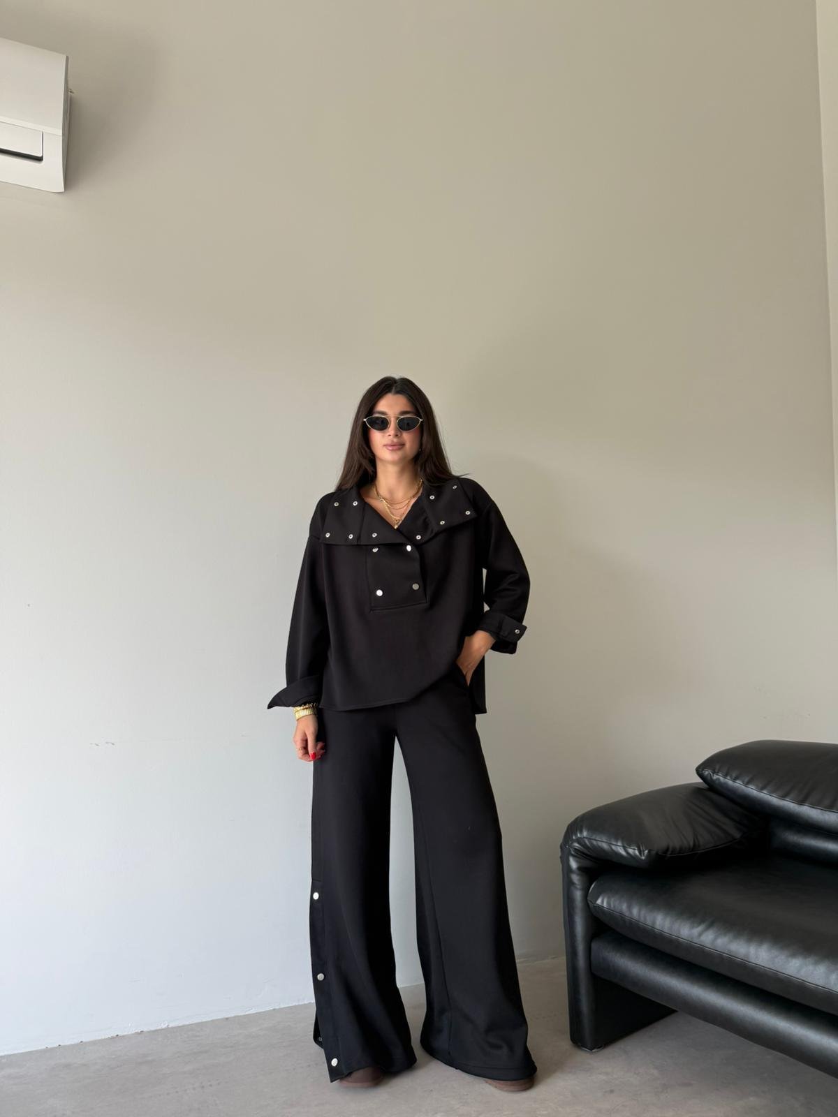 Siyah Çıtçıt Detaylı Premium Kalite Modal Takım (14097)