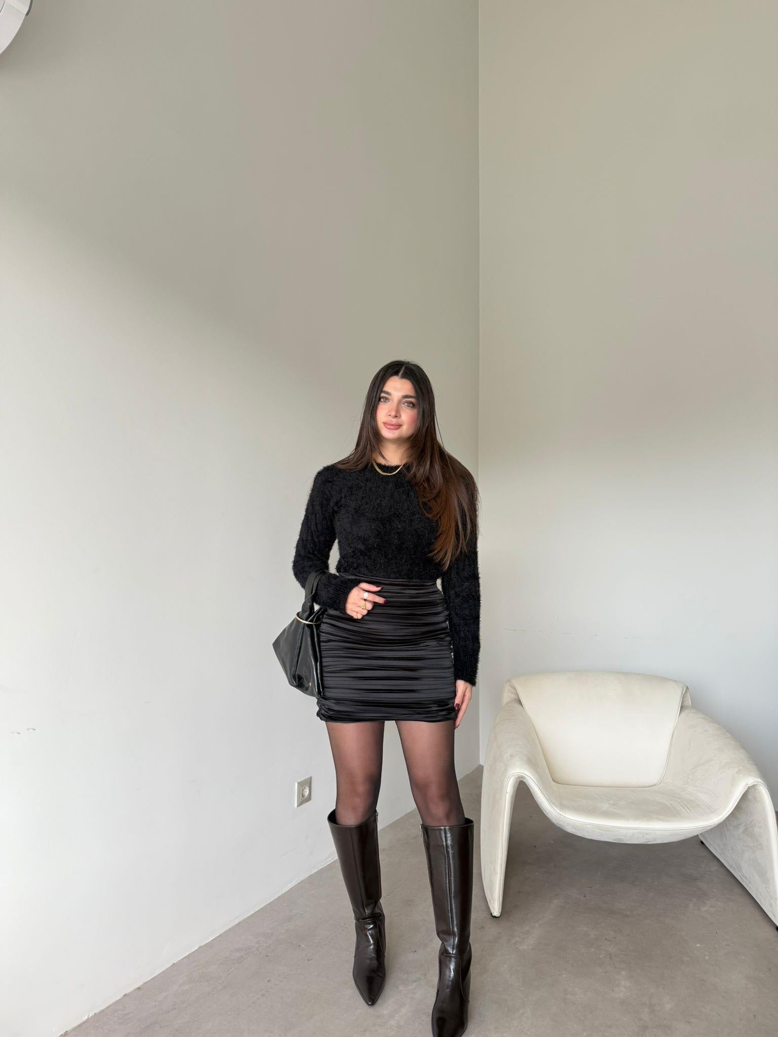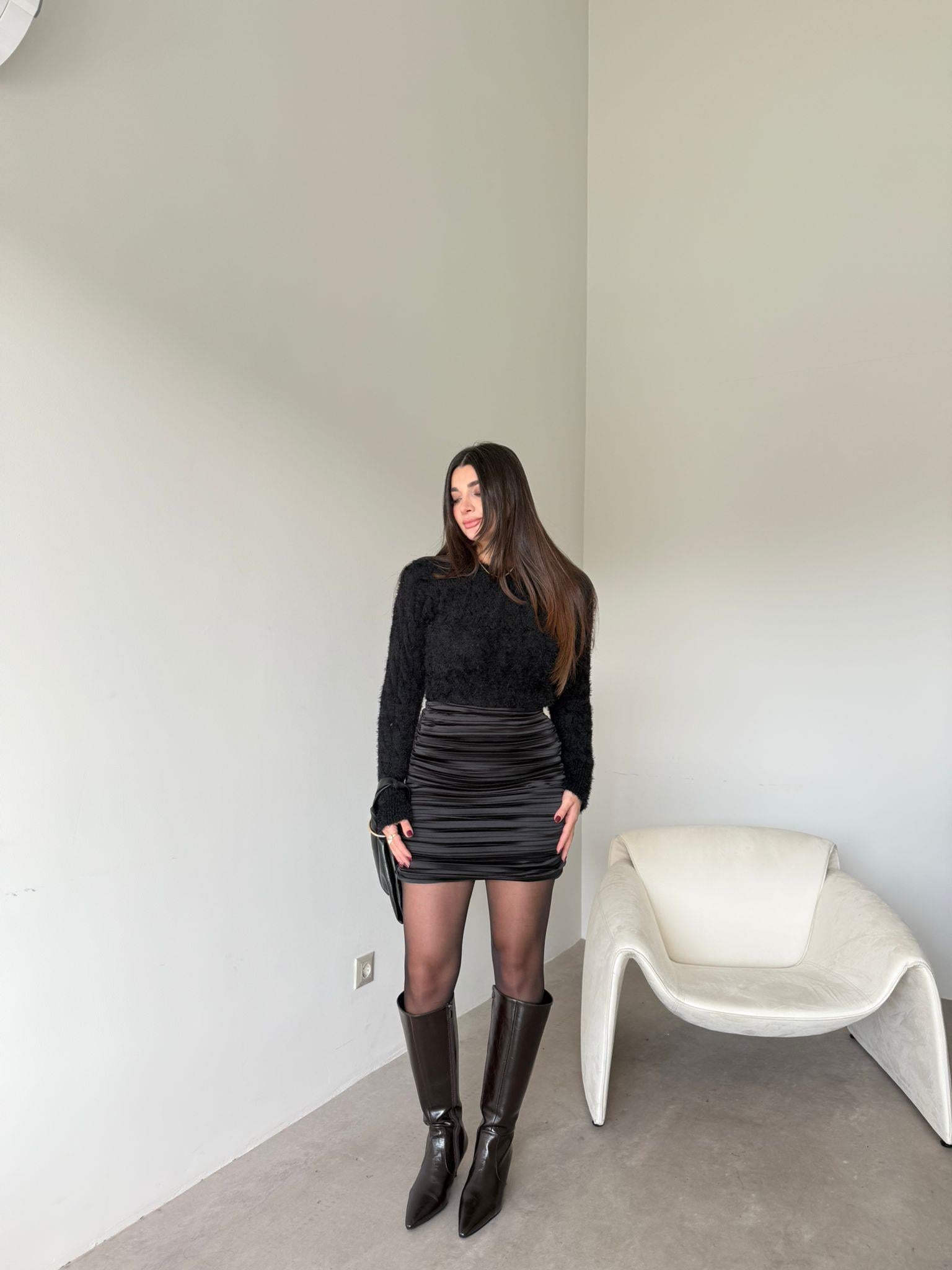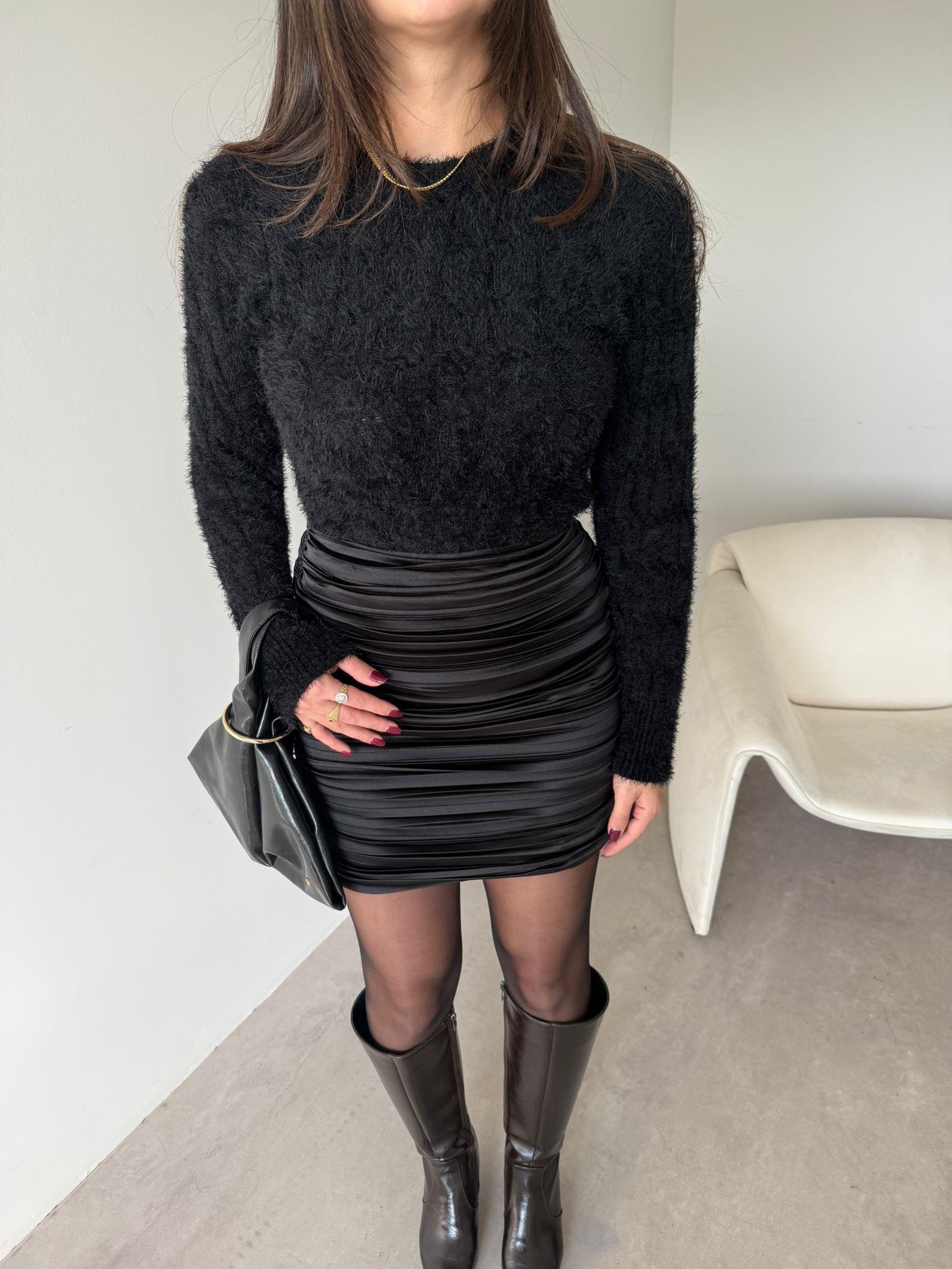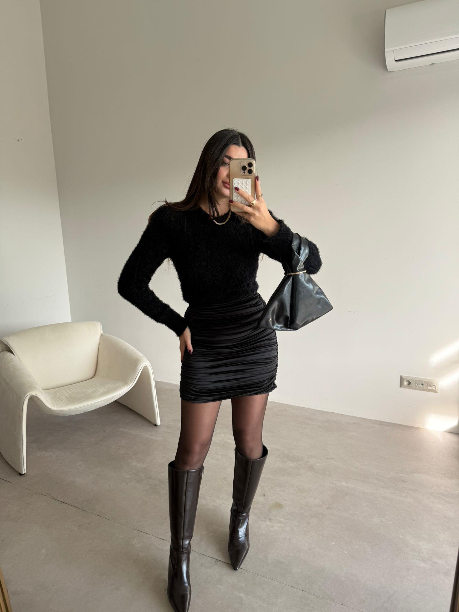 Siyah Drapeli Mini Etek (14362)