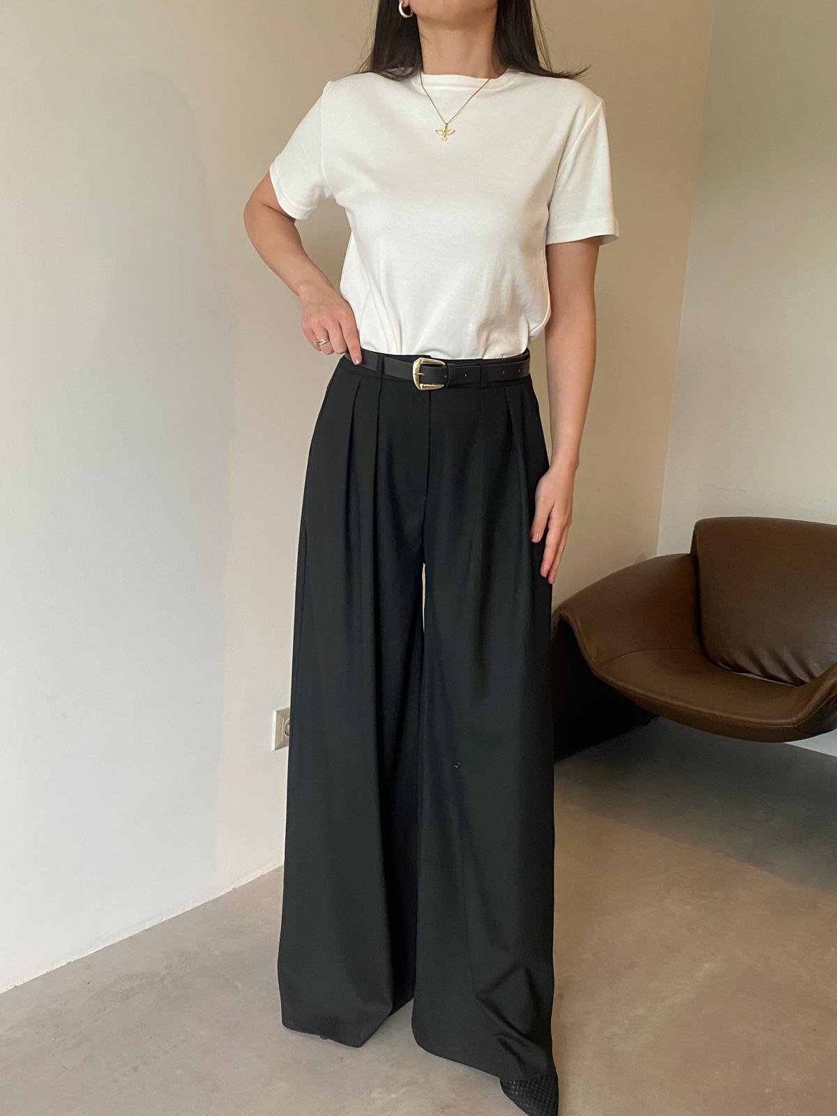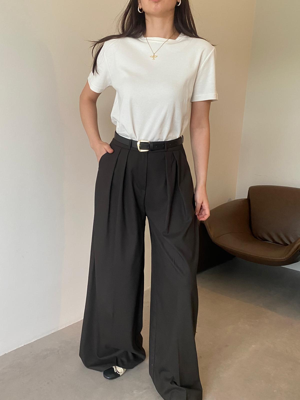Siyah Kemerli Pile Detaylı Palazzo Pantolon (14137)