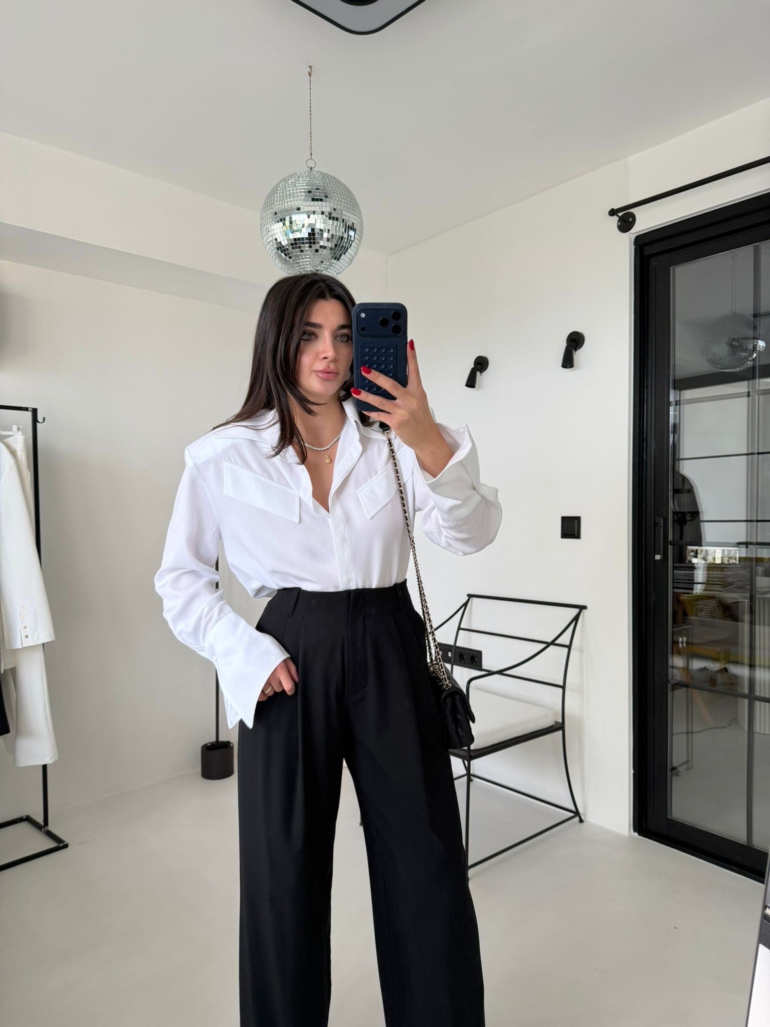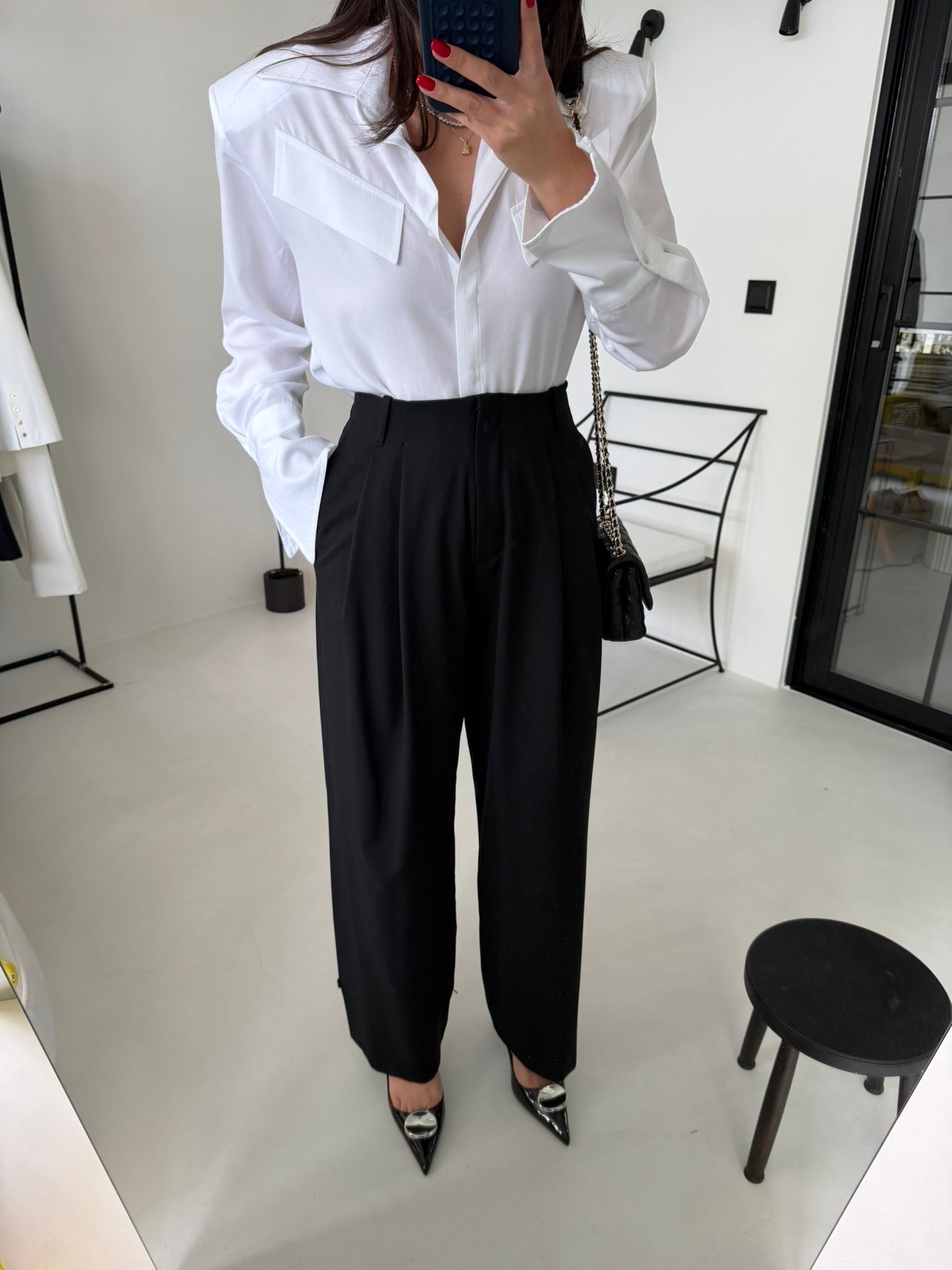 Siyah Pileli Paça Detaylı Pantolon (15106)