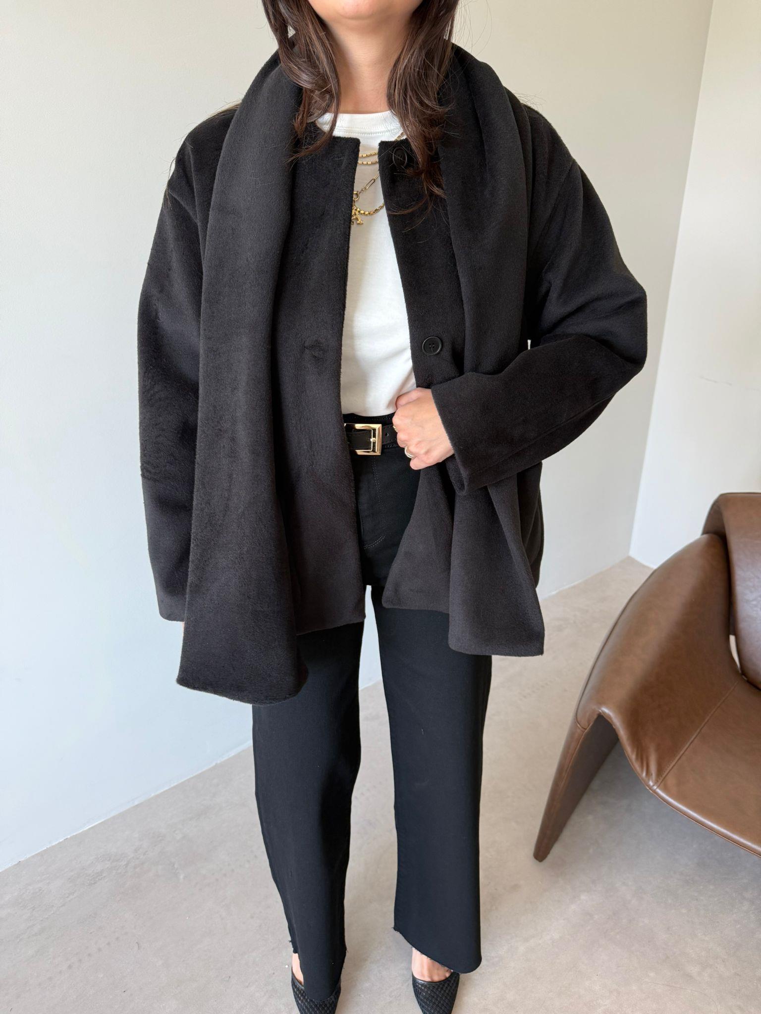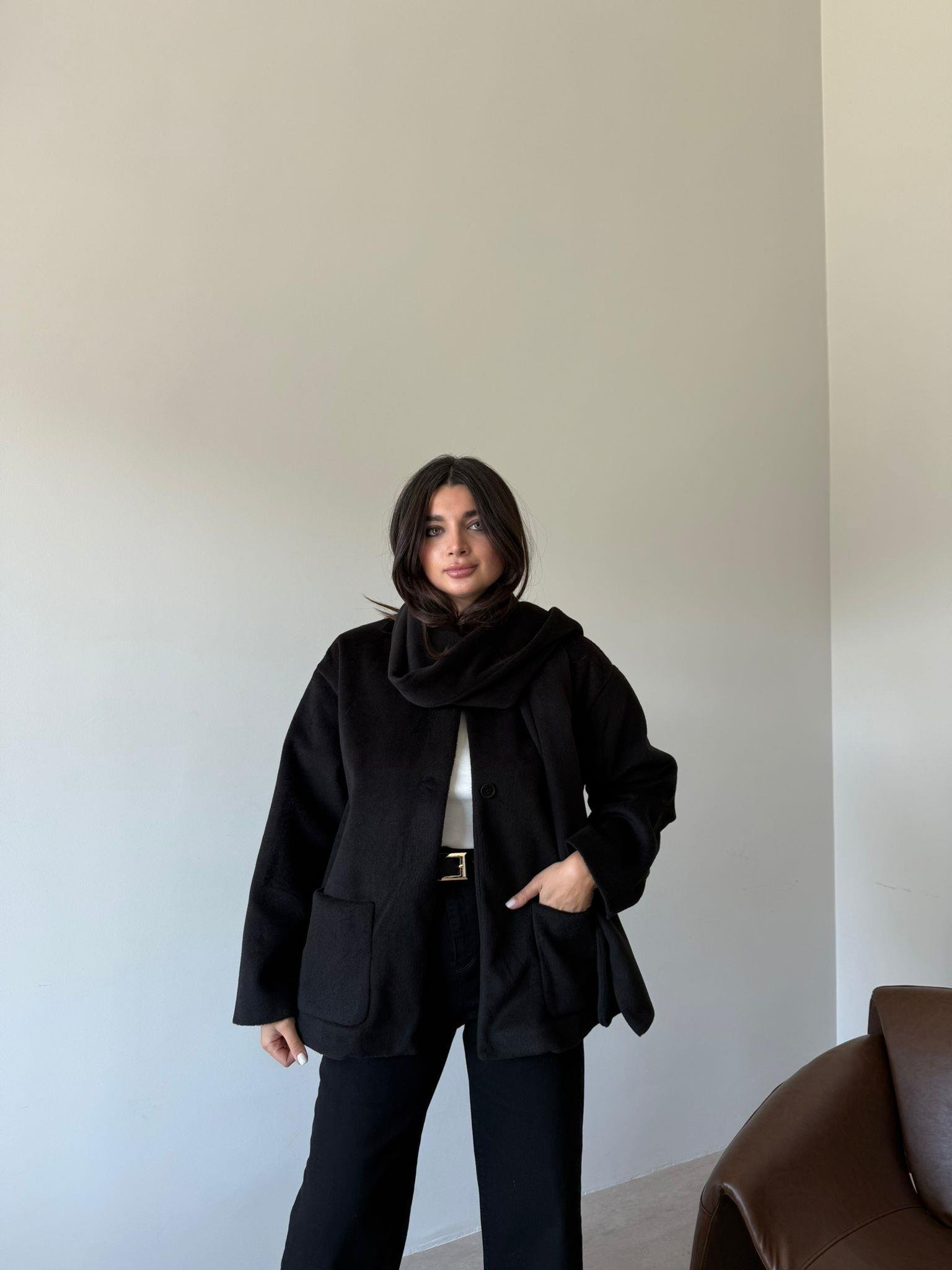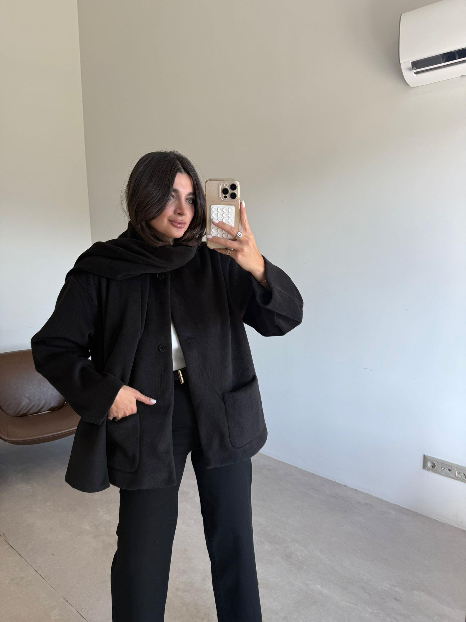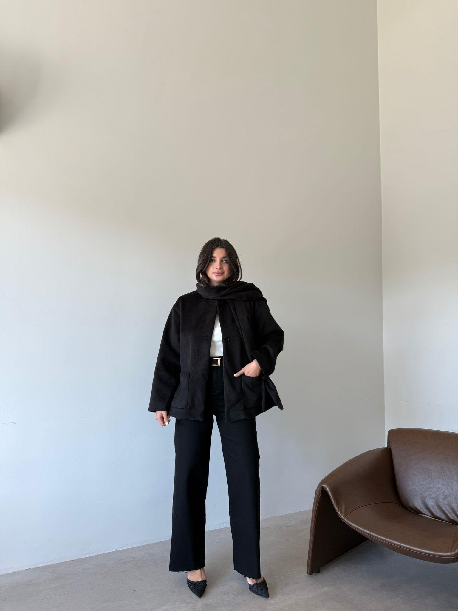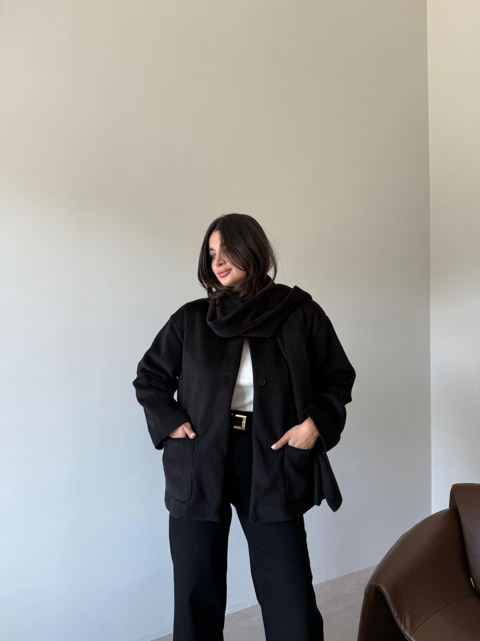 Siyah Şal Detaylı Kaşe Ceket (14216)