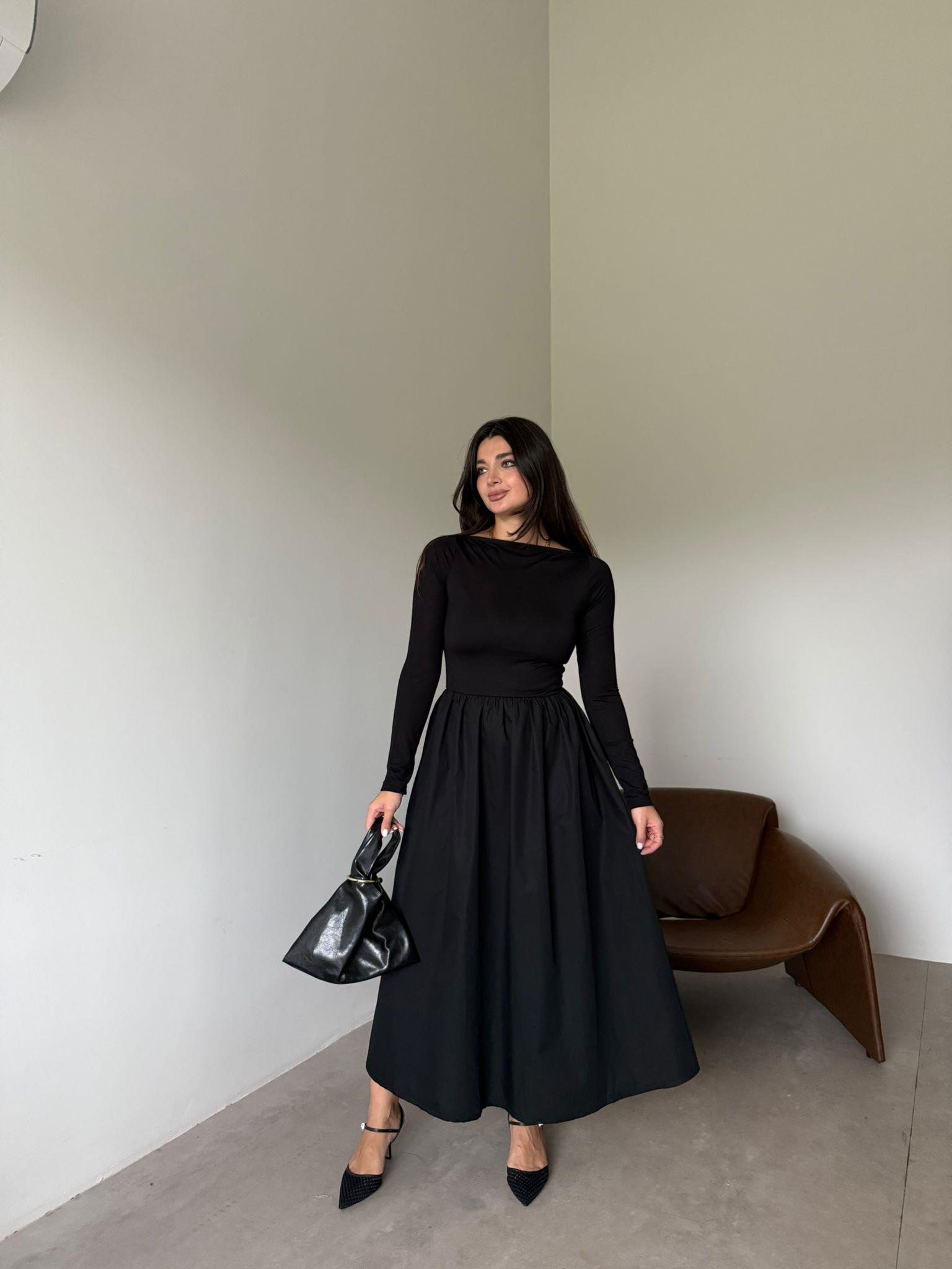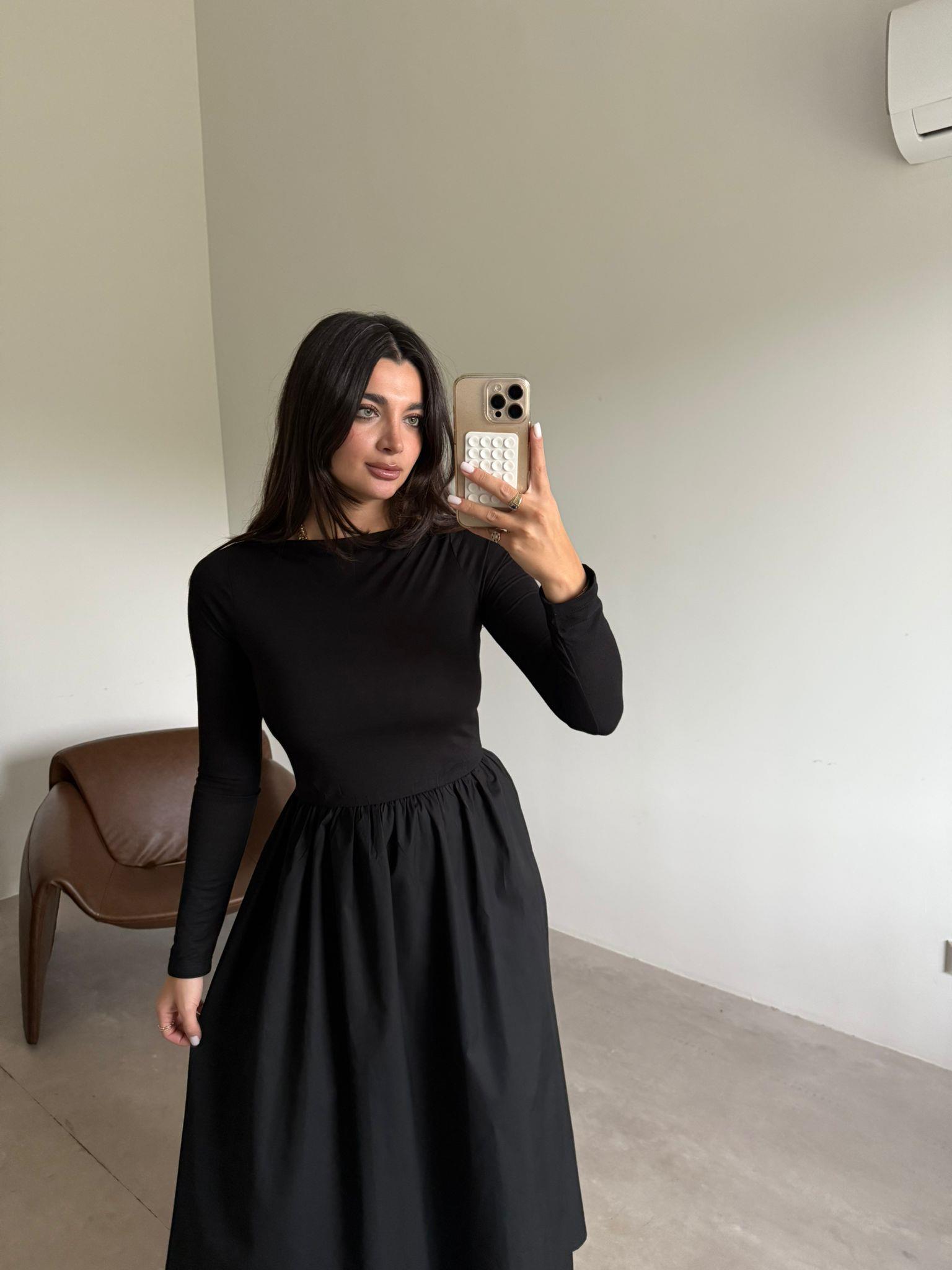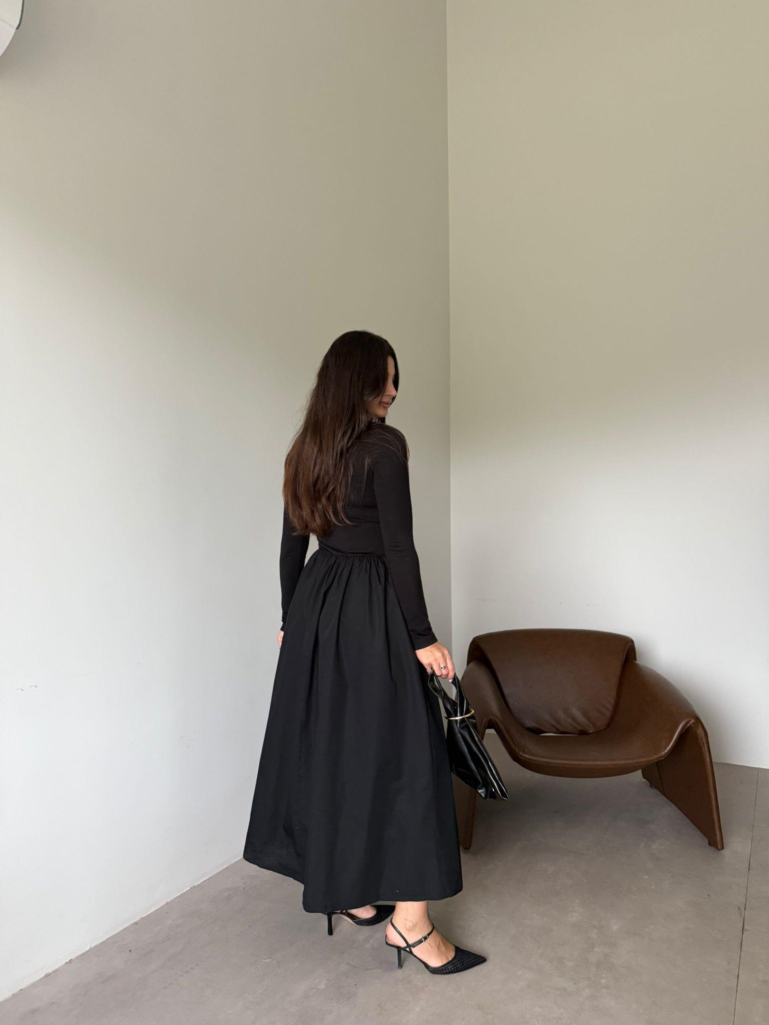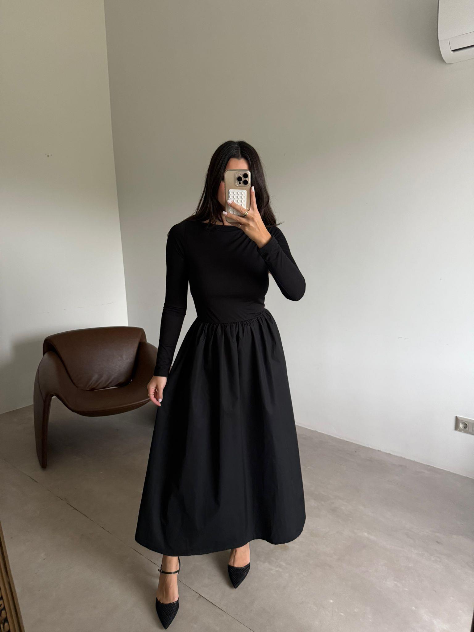 Siyah Uzun Kollu Poplin Elbise (14213)