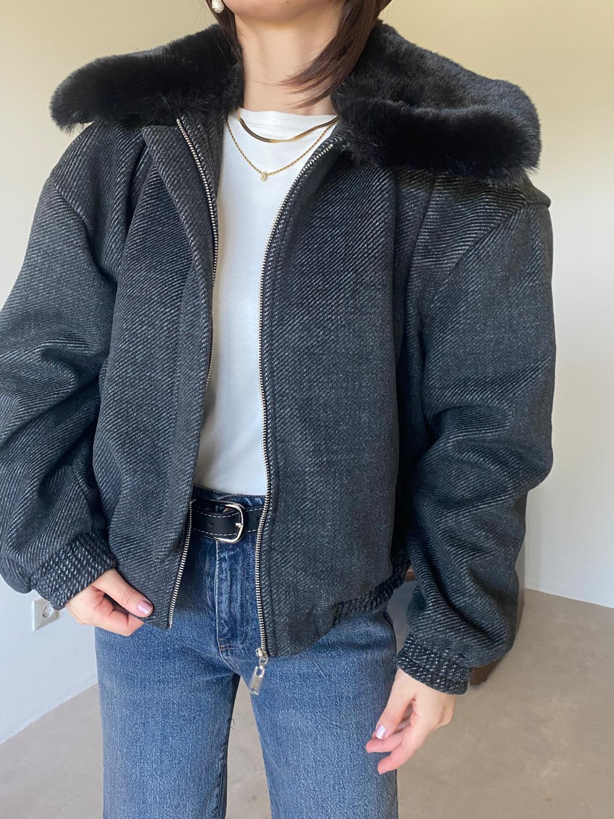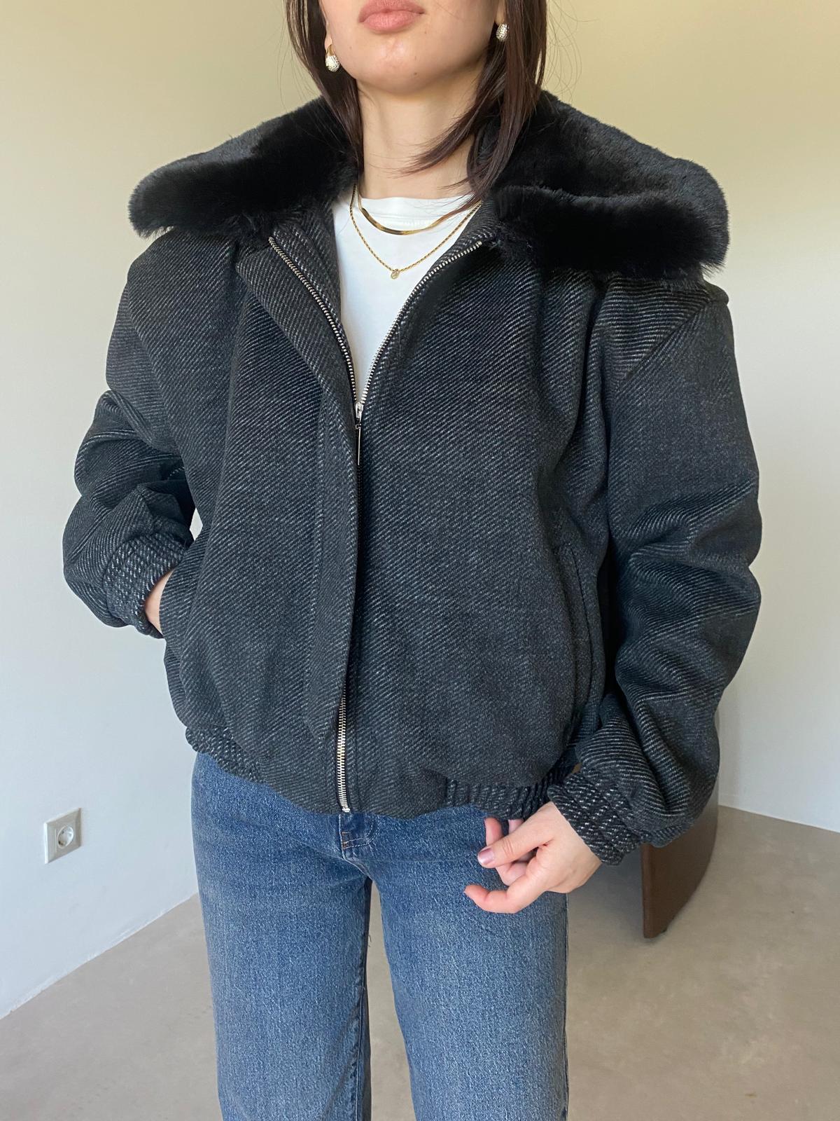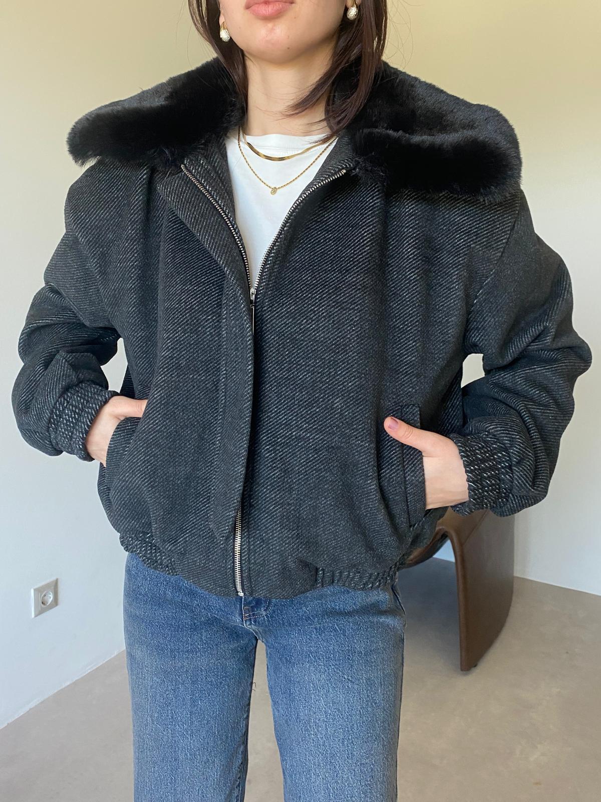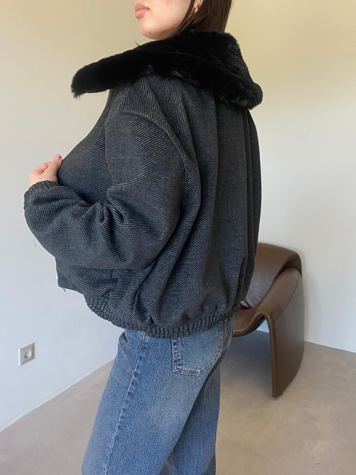 Siyah Yakası Kürklü Bomber Ceket (14179)