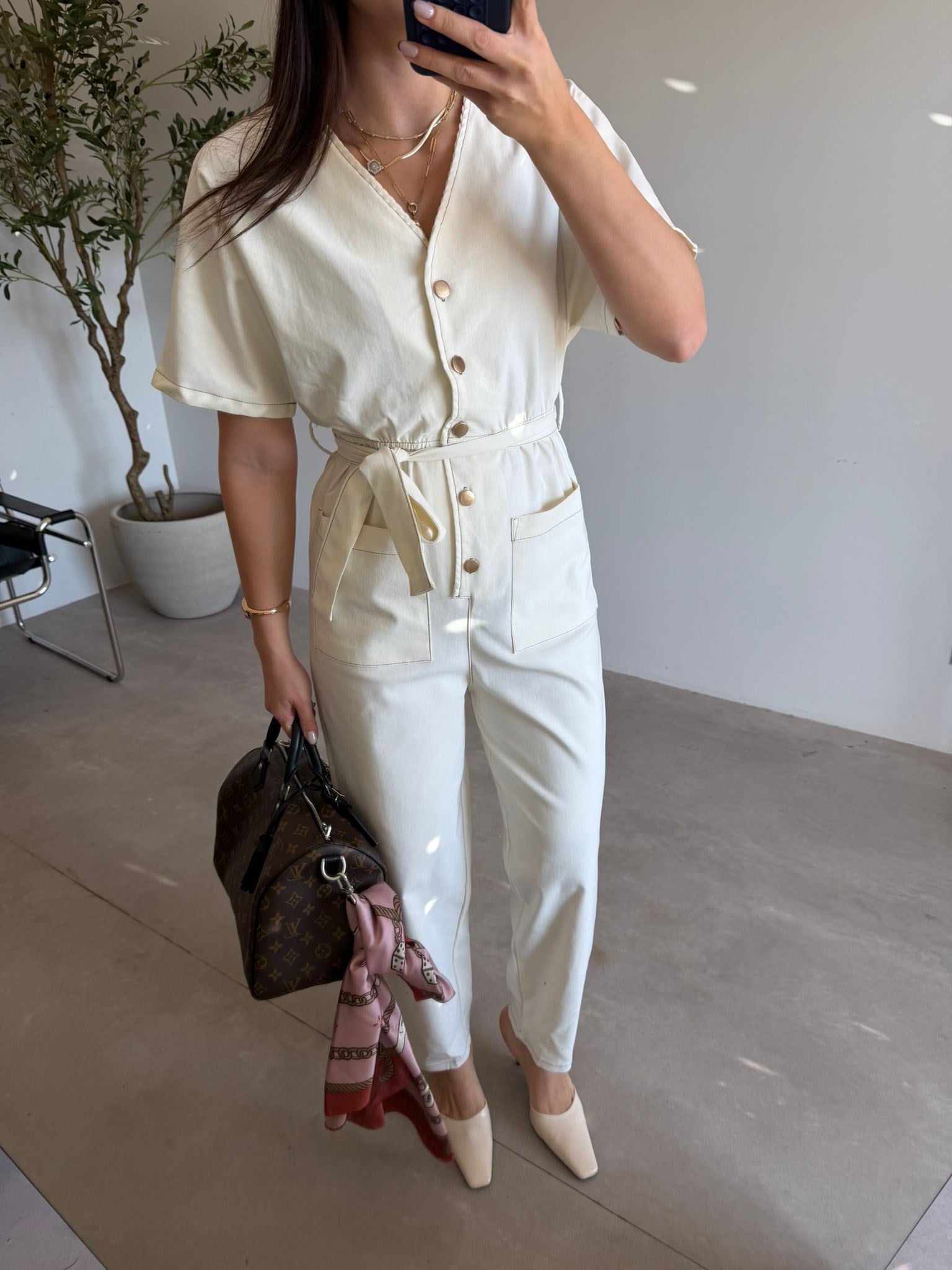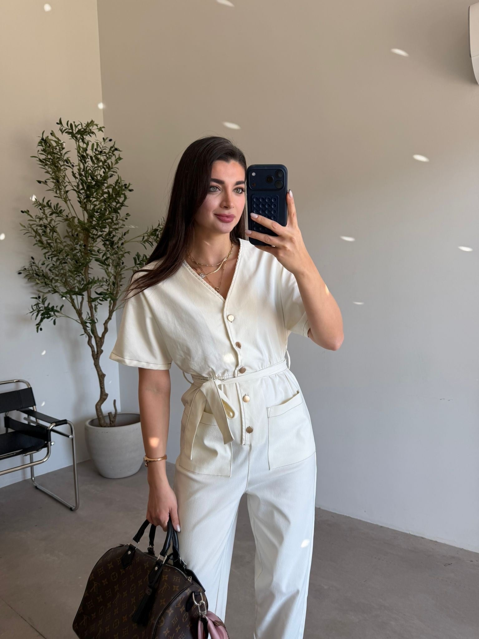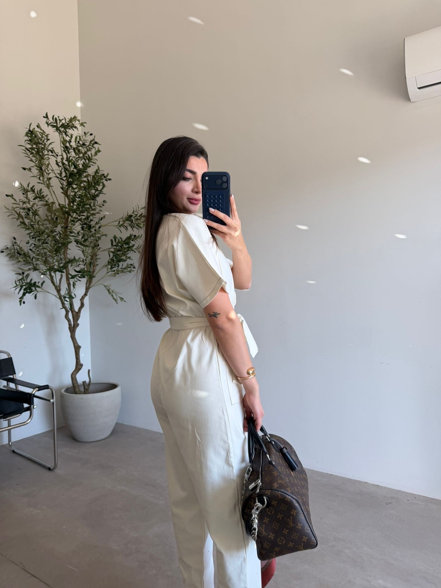 Taş Rengi Kemerli Cepli Tulum (15259)