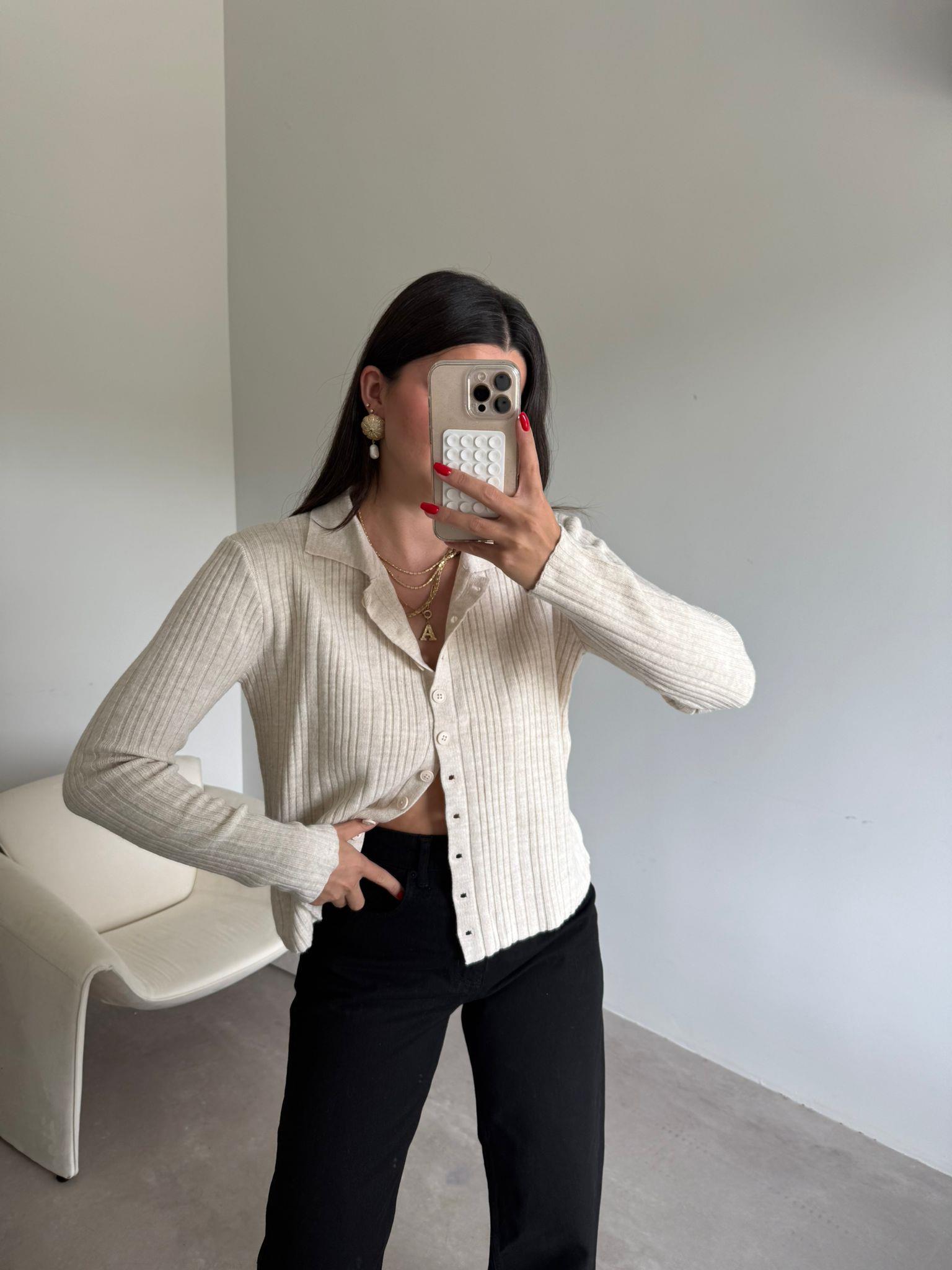 Taş Rengi Polo Yaka Triko Hırka (14011)